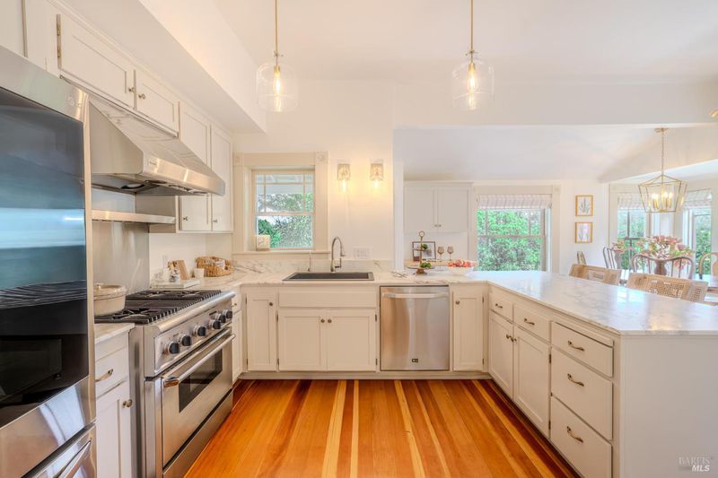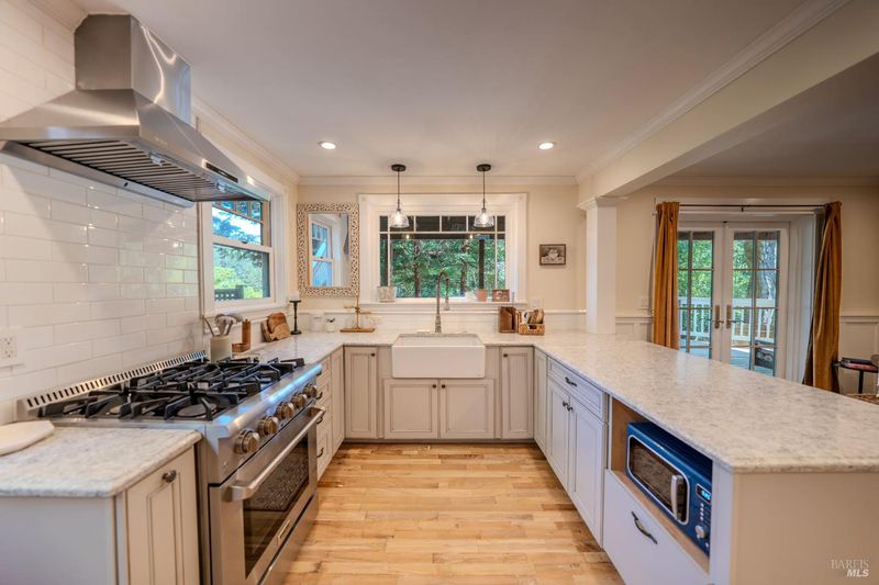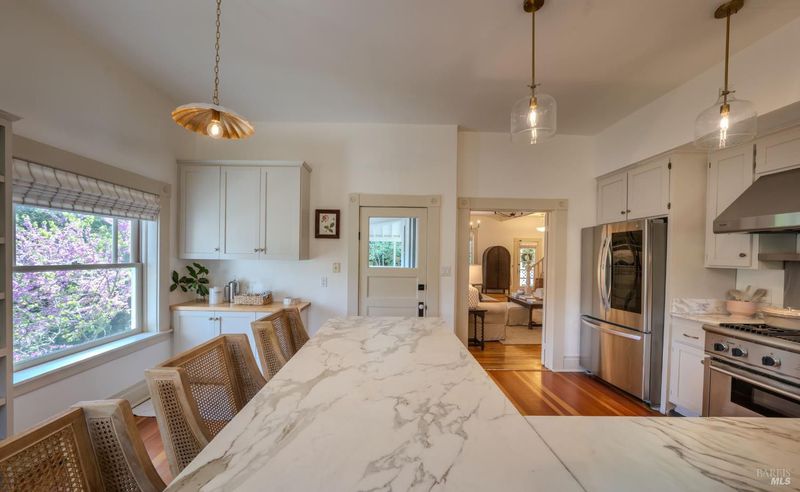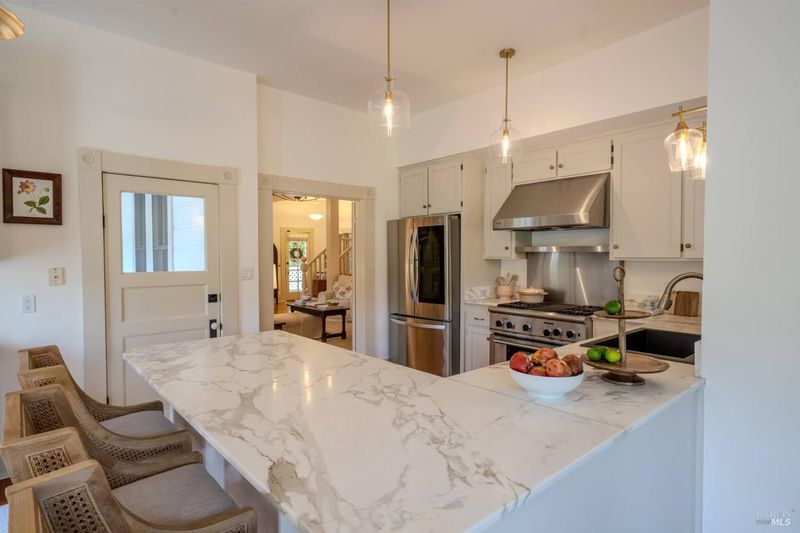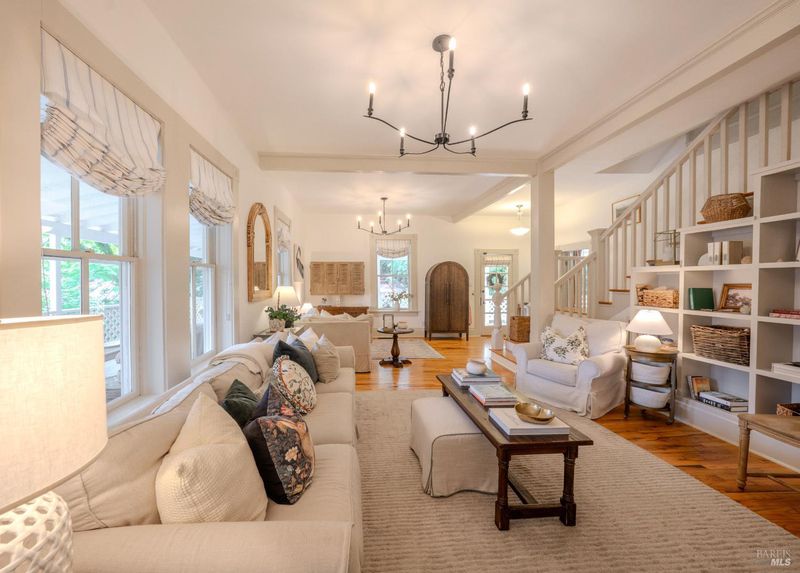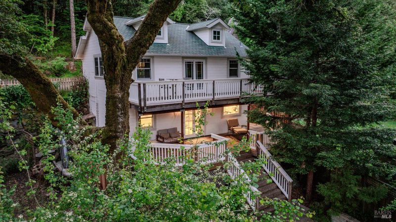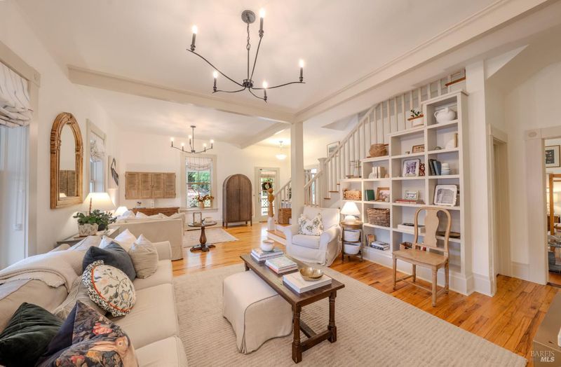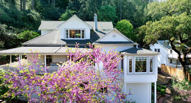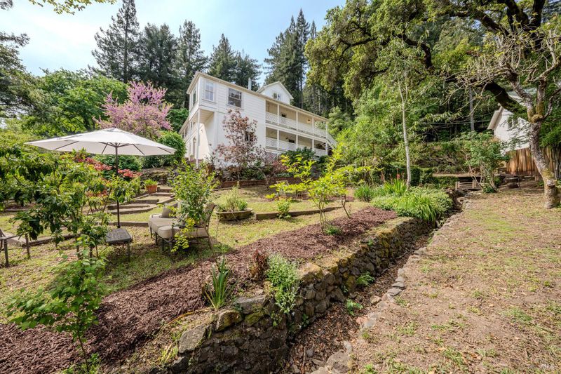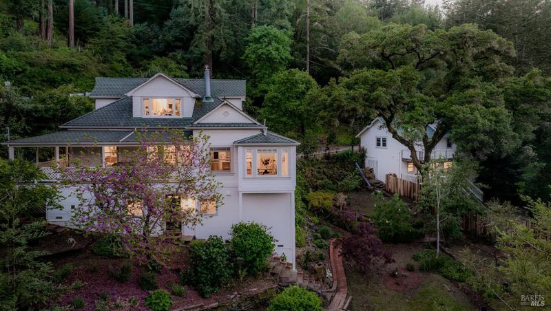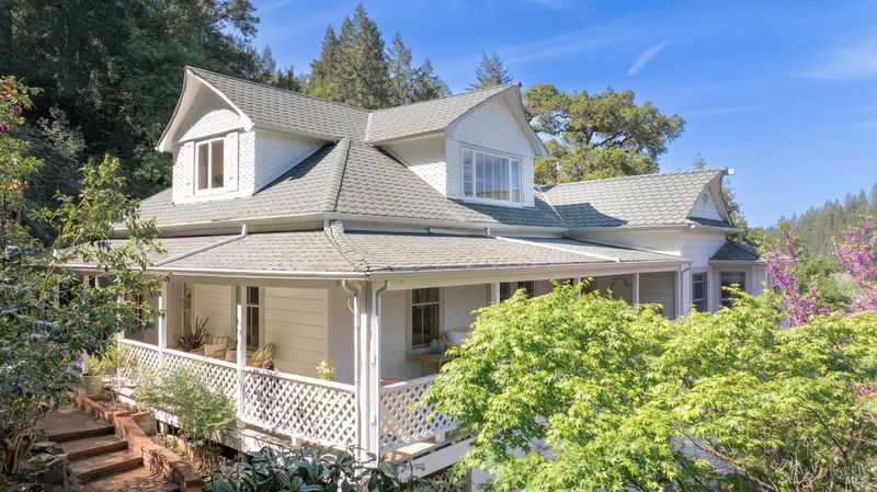 Stately Victorian compound in town on just under an acre in West Sonoma County. The main residence is thoughtfully preserved and enhanced with refined modern updates. The living spaces unfold with ease, centered around a generous, light-filled living room that showcases the timeless architecture and views, creating a truly inviting atmosphere. A classic covered porch embraces the home, seamlessly connecting indoor and outdoor living spaces, inviting opportunities from sunrise to sunset. The thoughtfully designed kitchen is appointed with marble countertops, bar seating, and high-end appliances, and flows naturally into the dining area as an intuitive extension for entertaining. The main level entry includes three bedrooms and a beautifully detailed bath featuring a clawfoot tub and walk-in shower. Upstairs, additional bedrooms capture sweeping views of redwoods and the rolling Sonoma hillside, complemented by a second bath and flexible space well suited for an office or creative use. Additionally, a detached guest cottage offers a private and versatile living opportunity, complete with a refined kitchen, bath, and generous covered deck overlooking a private patio. Above the guest house, a carriage house is framed and ready for future vision, presenting an opportunity for expansion or additional utility. Outdoor living is thoughtfully integrated throughout the property, with a network of pathways, porches, decks, balconies, and patios designed to embrace the surrounding landscape and Sonoma County lifestyle. A private garden gate leads directly into the peaceful town of Occidental, where charming restaurants and local favorites are just a short stroll away, offering the ease of a weekend getaway atmosphere that feels subtly vibrant and deeply rooted in West County charm.