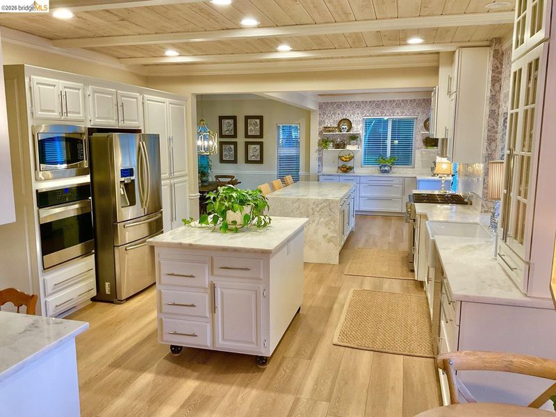 - Dishwasher, Double Oven, Gas Range, Plumbed For Ice Maker, Microwave, Oven, Refrigerator, Self Cleaning Oven, Dryer, Washer, Gas Water Heater, Breakfast Nook, Counter - Solid Surface, Stone Counters, Eat-in Kitchen, Disposal, Gas Range/Cooktop, Ice Maker Hookup, Oven Built-in, Pantry, Self-Cleaning Oven, Updated Kitchen