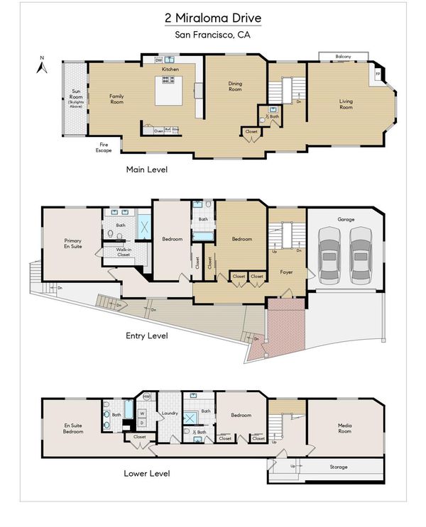 This is the kind of home that rarely comes to market and even more rarely lands this well. Every inch at 2 Miraloma has been considered, edited, and executed with intention. Design that feels effortless, but is anything but. The top level sets the tone immediately: grand, light-filled living and entertaining spaces framed by sweeping views that pull you in and hold your attention. Volume, scale, and flow all exactly where they should be. The kitchen is a stand out equal parts showpiece and work horse with premium appliances, clean architectural lines, and exceptional functionality. Just off the kitchen, a sun room that performs year-round bright, warm, and quietly addictive. One level down, the bedroom floor is centered around a primary suite that feels polished and resolved. Two additional bedrooms complete the level well-proportioned, well-positioned. The lower level delivers the flexibility buyers are chasing: a proper family room, two additional bedrooms, and a dedicated laundry space bringing the home to a total of five bedrooms, four full bathrooms, and a powder room, all thoughtfully integrated. Natural light is a constant throughout, with expansive windows framing outlooks and reinforcing the home's connection to its surroundings. The result is a home that feels open, composed, and complete. Fully modernized systems, two-car parking, and a location that continues to out perform just minutes to West Portal Village for coffee, dining, and seamless downtown access. Monterey Heights remains one of San Francisco's most architecturally consistent and tightly held enclaves where inventory is scarce, and quality is immediately apparent. A home that delivers on design, scale, and presence.