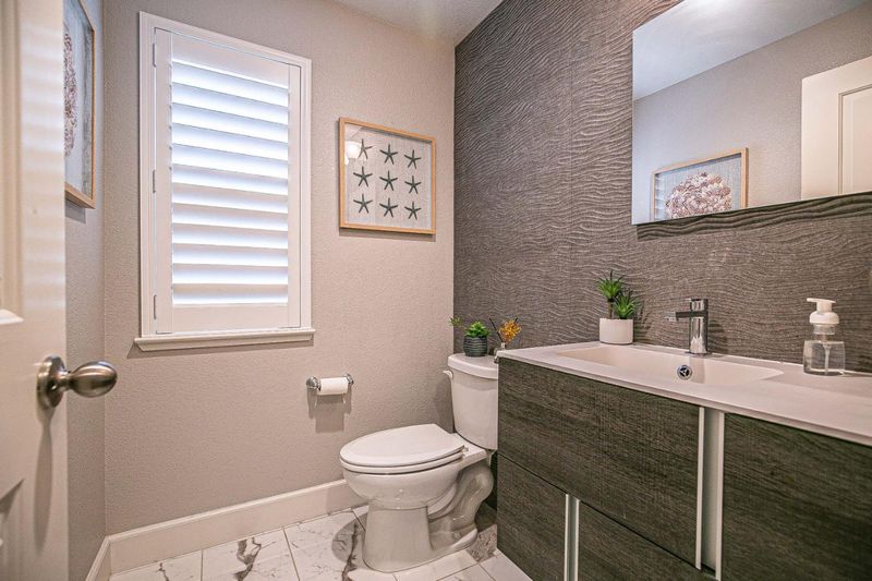 Stunning Corner North East facing Mediterranean style townhome that brings ample sunlight in the morning and evening from all 3 sides of the home (end unit). The home is located in a gated community and upgraded with one of a kind contemporary kitchen with top end luxury finishes encompassing subzero wolf and Italian cabinets. Custom soft close cabinets throughout with storage on both sides of the waterfall island. Living room has custom high end electric fireplace and built in TV unit with motorized solar shades. Custom drapery for all the rooms including living area. Powder room is upgraded with contemporary finishes. Hardwood floors in the living and entry with luxury padded carpet through the bedrooms. Master bedroom has custom built walk-in closet and garage is furnished with Custom cabinet storage unit. The house faces huge community park area allowing significant space in the main entry way making the home stand out. Secured with an access gate allows 2 min walkable access to BJs, AMC, and Costco and new community in the revamping NewPark Mall. Just a turn away to access freeway 880 and walkable distance to Google bus stop, Starbucks, Supermarkets, restaurants and many retail stores. Don't miss to tour this exclusive home in the most sought