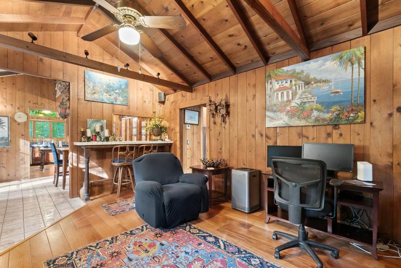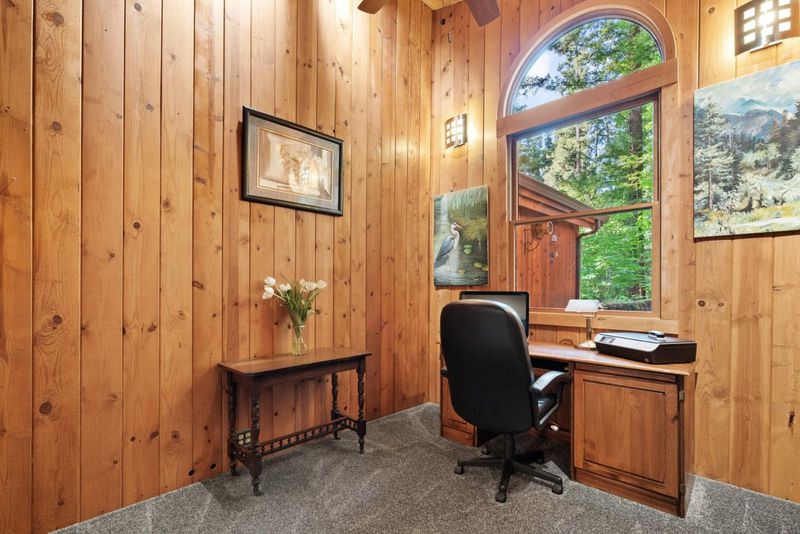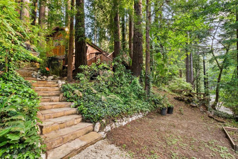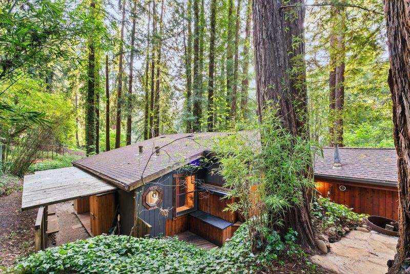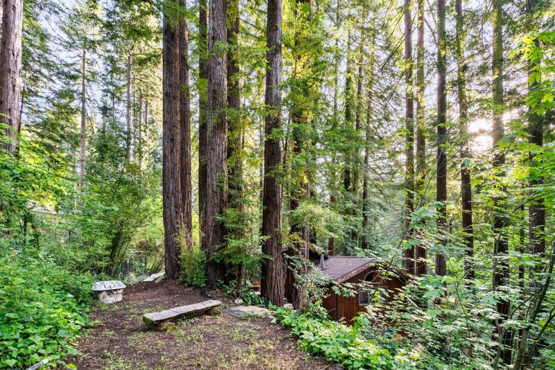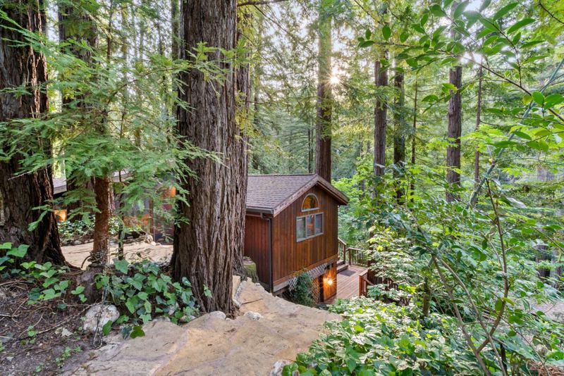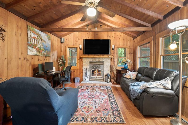 Welcome to 15101 Two Bar Rd a storybook 2-bedroom, 1-bath home on a 0.61-acre lot in Boulder Creek. This 1,412 sqft retreat blends classic Santa Cruz Mountains character with thoughtful modern upgrades. An oversized deck greets you as you arrive, ideal for morning coffee under the redwoods or evening entertaining. Inside, enjoy a cozy wood-burning fireplace insert for cool mountain nights. The kitchen features a gas stove with all appliances included, and the updated bathroom offers soft-close cabinetry and a heated towel warmer. A dedicated office with attic access provides flexible work-from-home or storage options. Recent improvements include a new gas furnace, gutters, and an upgraded electrical panel with a 220V circuit ready for a hot tub. The roof and septic system have both been recently inspected and are in good condition. The lot offers room for RV parking and entertainment. Terraced gardens feature a curated mix of trees, flowering plants, and blueberry bushes on drip irrigation, plus a garden shed, outdoor structures, and storage below the home. New carpet in both bedrooms adds comfort, and the main bedroom opens to a private deck where you can step directly into nature. Tucked into the redwoods with serious charm, practical upgrades, and rare acreage, a must see!