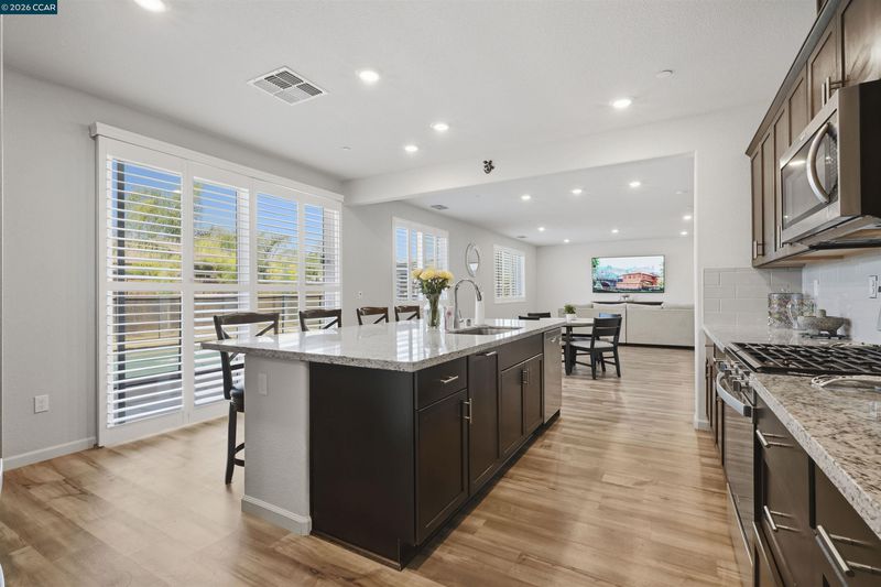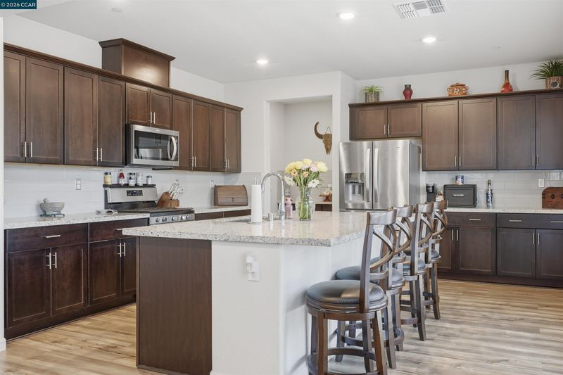 - Dishwasher, Gas Range, Plumbed For Ice Maker, Microwave, Free-Standing Range, Refrigerator, Tankless Water Heater, Stone Counters, Eat-in Kitchen, Disposal, Gas Range/Cooktop, Ice Maker Hookup, Kitchen Island, Pantry, Range/Oven Free Standing