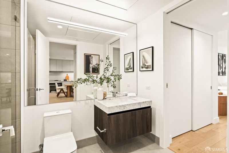 Brand new and incredibly spacious! The Residences at Yerba Buena Island offer a rare opportunity to enjoy tranquil island living with effortless access to Downtown San Francisco. This light-filled, move-in-ready one-bedroom residence with parking overlooks a beautifully landscaped courtyard and features refined modern finishes throughout. Nearly 10-foot ceilings and floor-to-ceiling windows create an open, airy atmosphere. The chef's kitchen is appointed with Arclinea Italian cabinetry, Miele appliances, and Dornbracht fixtures, complemented by wide-plank white oak flooring and a level-4 wall finish. The spa-inspired bathroom includes a Carrara marble countertop and an oversized walk-in shower. Residents enjoy access to 72 acres of open space with scenic trails. As a part of Treasure Island, there are eight new parks and the best kept secret, Clipper Cove and Clipper Cove Beach. The Residences at Yerba Buena Island include a state-of-the-art fitness studio, resident lounge and terrace with fireplace and rooftop BBQ lounge. The resident experiential programing includes attended lobby with coffee service, monthly social events and resident gatherings, and 24/7 roving security. The wellness program includes fitness and mind/body classes. Complimentary shuttle service connects to the Yerba Buena Island/Treasure Island ferry and an approximately 8-minute ride to the San Francisco Ferry Building (monthly transportation pass included). Secured garage parking included (parking may be excluded for a $115,000 price reduction).