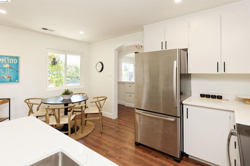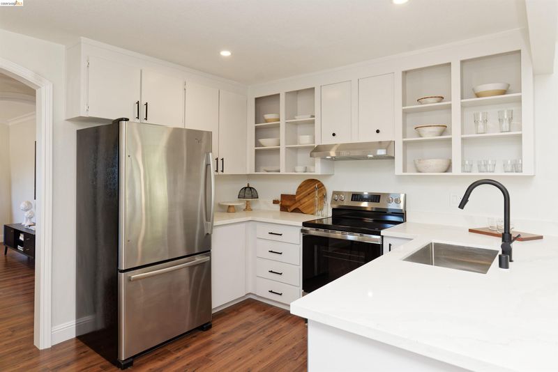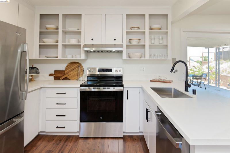 Welcome to this charming, beautifully maintained single-story home in the highly desirable View Pointe neighborhood of Rodeo. Offering 3 bedrooms, 2 bathrooms, and a spacious 2-car garage, this inviting residence blends comfort, style, and convenience. Step inside to discover a light-filled interior featuring fresh paint, modern laminate flooring, and recessed lighting that creates a warm, contemporary feel throughout. The updated kitchen shines with new appliances, sleek countertops, refreshed cabinetry, and a new sink and faucet—perfect for everyday living and entertaining. Enjoy cozy evenings by the classic wood-burning brick fireplace, or unwind outdoors in the attractive backyard, where a covered patio and storage shed complement scenic views of the valley, rolling hills, and the bay—an ideal setting for relaxing or hosting guests.