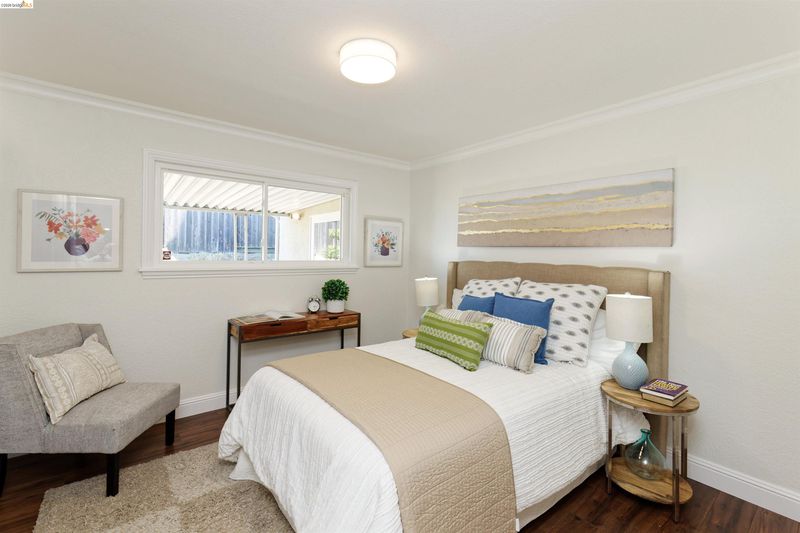 Welcome to this charming, beautifully maintained single-story home in the highly desirable View Pointe neighborhood of Rodeo. Offering 3 bedrooms, 2 bathrooms, and a spacious 2-car garage, this inviting residence blends comfort, style, and convenience. Step inside to discover a light-filled interior featuring fresh paint, modern laminate flooring, and recessed lighting that creates a warm, contemporary feel throughout. The updated kitchen shines with new appliances, sleek countertops, refreshed cabinetry, and a new sink and faucet—perfect for everyday living and entertaining. Enjoy cozy evenings by the classic wood-burning brick fireplace, or unwind outdoors in the attractive backyard, where a covered patio and storage shed complement scenic views of the valley, rolling hills, and the bay—an ideal setting for relaxing or hosting guests. Major upgrades include a new roof installed in 2024 and sewer lateral compliant. Conveniently located near local parks and neighborhood greenbelt trails. Easy access to Highways 80 and 4, public transportation, and is less than 1.5 miles from downtown Rodeo’s shops and restaurants. This is a wonderful opportunity to own a move-in ready home in a peaceful, well-connected community.