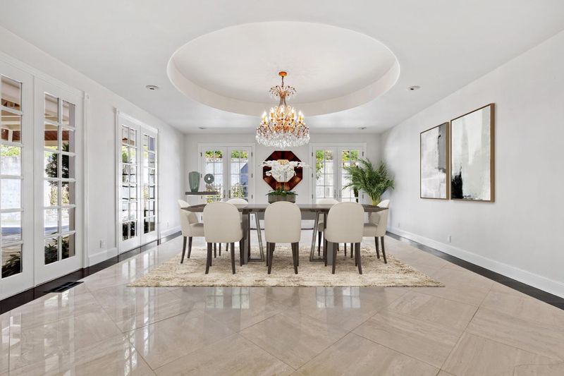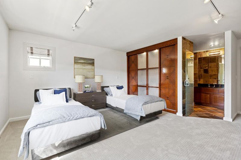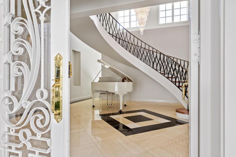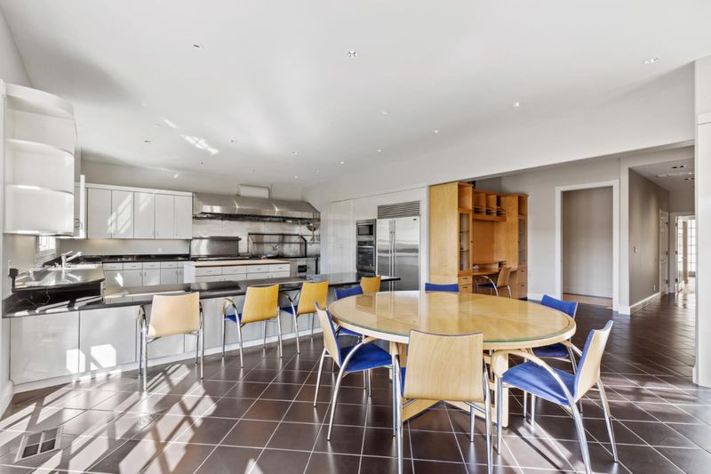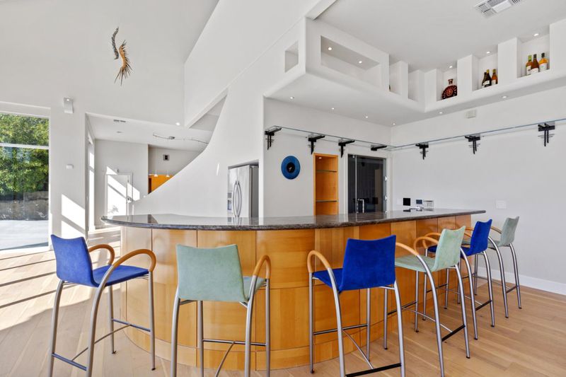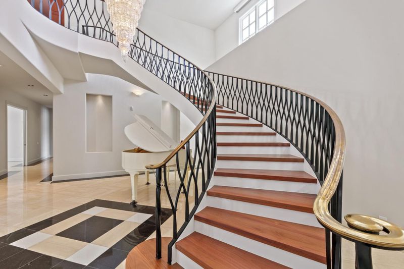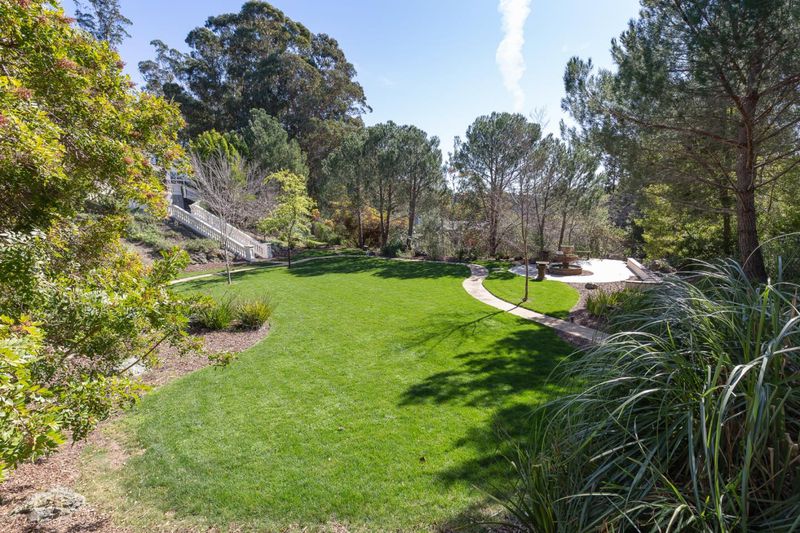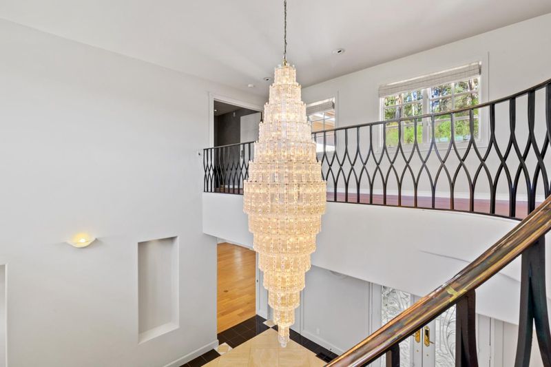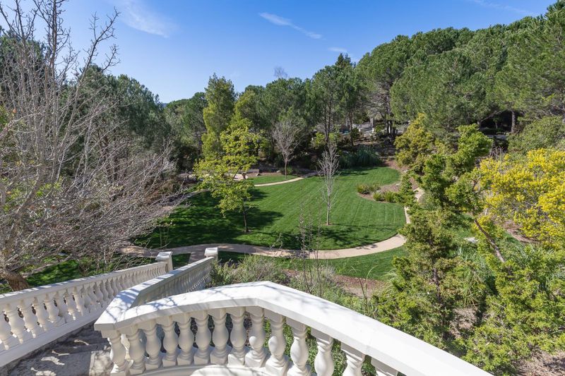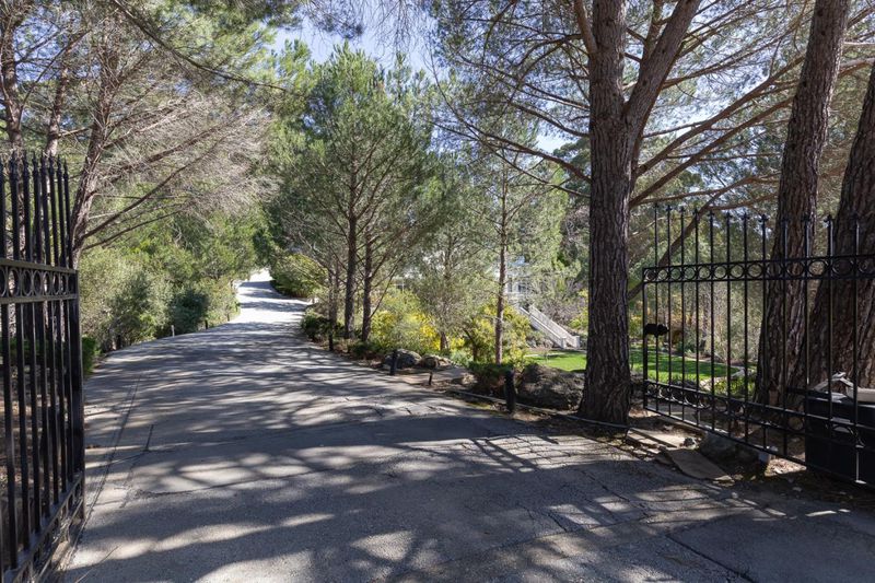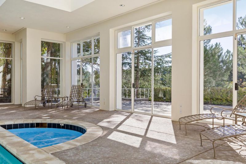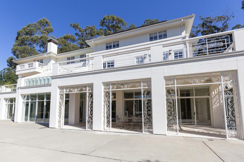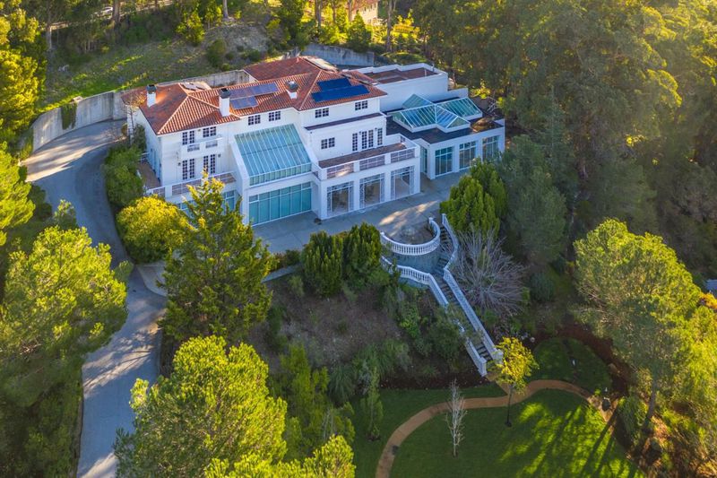 Perched on nearly two acres at the end of a quiet cul-de-sac in Hillsborough's sought-after Carolands neighborhood, this gated Mediterranean contemporary estate offers privacy, scale, and sweeping hill views. Remodeled in 1996 by a principal architect of Frank Lloyd Wright's company, the home showcases refined contemporary living with timeless architectural influence. Walls of glass, skylights, and French doors fill the interiors with natural light. A grand foyer with spiral staircase and chandelier sets the tone, opening to elegant living and dining rooms with fireplaces, hardwood floors, and view balconies. The showpiece is the expansive chef's kitchen, thoughtfully designed with COMMERCIAL-GRADE stainless steel appliances, custom cabinetry, and generous workspace. A striking breakfast bar with Wolf gas griddle anchors the space, while French doors open to a balcony, creating seamless indoor outdoor flow ideal for entertaining. The upper level features four en-suite bedrooms including a luxurious primary suite with fireplace, private balcony, dual walk-in closets, and spa-like bath. Lower level amenities include a wine cellar, bar, media area, indoor pool, and guest suite. Experience this exceptional estate in person and schedule your private tour today.