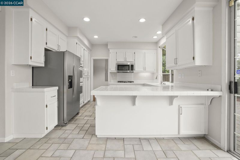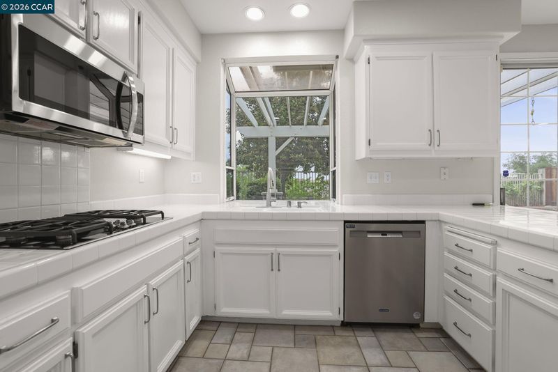 - Dishwasher, Double Oven, Electric Range, Breakfast Bar, Breakfast Nook, Tile Counters, Electric Range/Cooktop