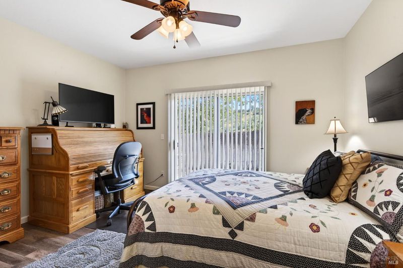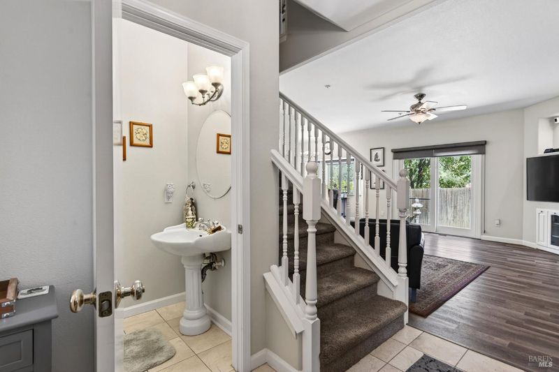 Tucked away on a quiet cul-de-sac, this beautifully appointed home offers scenic hillside views and a versatile floor plan designed for both comfort and functionality. The main level features a desirable ensuite bedroom with a full bath, complete with a tile shower stall, quartz countertops, double sinks, and a stylish barn door ideal for guests or multi-generational living. The inviting family room showcases luxury vinyl flooring and captures peaceful backyard views, with direct access to the landscaped outdoor space for seamless indoor-outdoor living. A separate living room provides additional space for entertaining or relaxing, while a convenient half bath is also located on the main level. The kitchen is thoughtfully designed with granite countertops and a large pantry. The charming dining area is perfectly positioned to take in the surrounding hill views. Upstairs, you will find a well-equipped laundry room with cabinets and a convenient built-in ironing board. Two additional rooms are located on this level, including the spacious primary suite. The primary bedroom offers a private retreat with an ensuite bath featuring double sinks, quartz countertops, a tile shower stall, and a separate oversized jetted tub, along with a generous walk-in closet. Additional highlights include a whole house fan for enhanced energy efficiency and a large garage complete with a utility sink and abundant storage space. The outdoor setting is designed for enjoyment and ease, featuring a combination of flagstone, decorative rock, grass, and outdoor lighting that enhances the ambiance. A covered patio with a metal roof provides a perfect gathering space, along with an outside corner area piped for gas, is ideal for outdoor cooking or entertaining. The property also offers RV parking with roll gates, a 30-amp trailer plug, and a separate shed for tools or additional storage. This home blends thoughtful upgrades, flexible living spaces, and beautiful views in a desirable location.