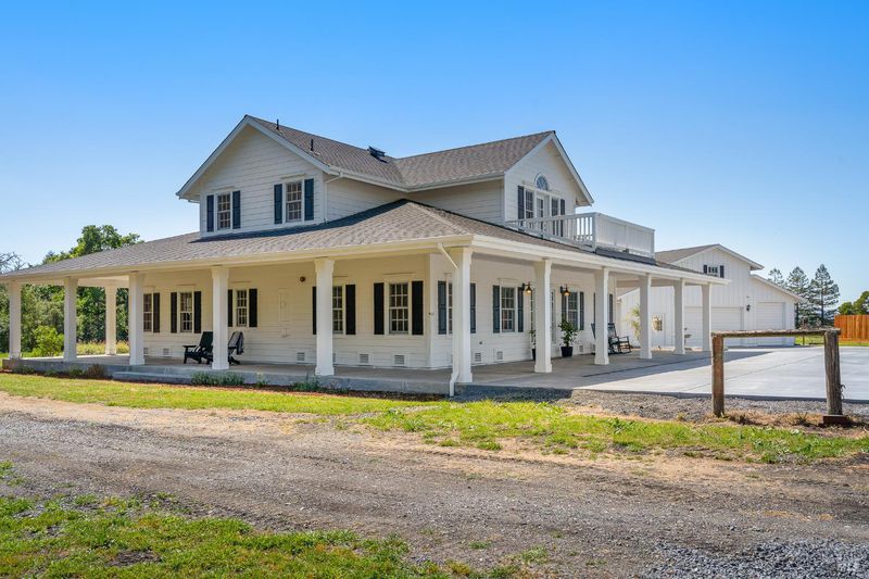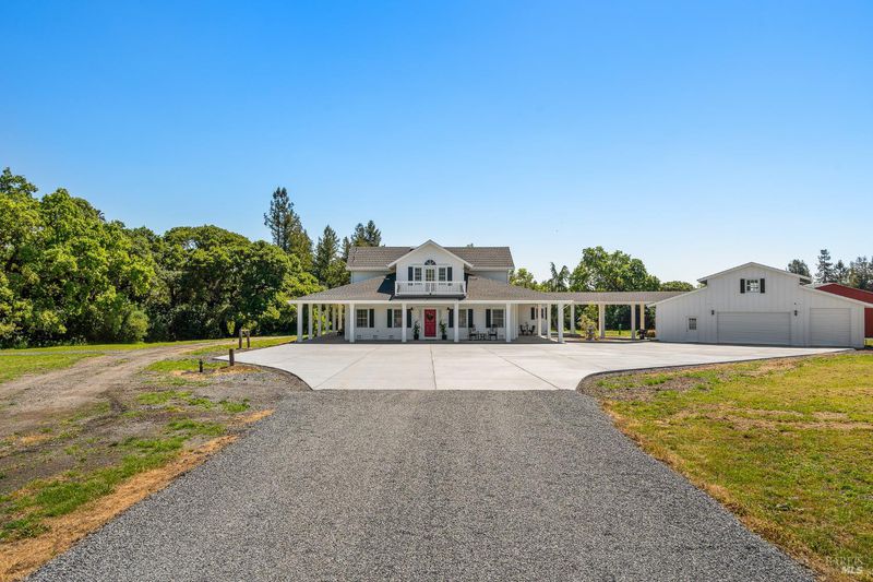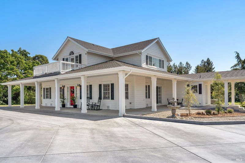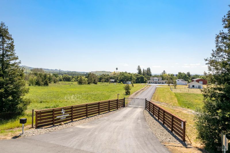 Welcome to White Horse Ranch, a beautiful country property situated on over 10+ usable acres in a sought-after Sonoma County setting. Blending timeless farmhouse charm with modern efficiency, this gated retreat offers space, versatility, and a lifestyle that feels both elevated and grounded. Extensively renovated in 2025 and 2026, the home is thoughtfully designed for comfort and functionality. A main-level primary suite offers ease of living, while a second upstairs suite with a private balcony creates a peaceful escape. The updated kitchen features Viking appliances and new suede quartz countertops with a full backsplash. Hardwood floors, plenty of natural light and a fireplace add warmth to the living spaces. Enjoy the wrap-around porch, perfect for taking in the view of the hills, backdrop of trees and perimeter landscaping with a nearby water fountain adding to the ambiance. The grounds are equally compelling. A classic white barn with three stalls and tack room serves as the focal point for equestrians, surrounded by expansive, level land ideal for horses, a hobby vineyard, or an orchard. A pond, fruit trees, and garden beds enhance the natural beauty and sense of tranquility, creating an environment that invites both relaxation and outdoor activities. Take a stroll on a path that goes across the seasonal creek to a detached cottage well-suited for guests, a studio, or an office. Additional highlights include new 7,000-square-foot concrete driveway, a 3-car garage, and a massive newly built 3,000-square-foot shop. All recent home improvements are complemented by energy-efficient upgrades including a new roof, insulation, whole-house fan, and a newly installed well system with 12.5 GPM, 5,000-gallon storage tank, UV filtration, and water softener. A full list of features and additional property details are outlined in the property brochure, including information regarding insurability outside of the California Fair Plan. While the location offers a rural feel, you're still just a short distance from local shops, dining, and everyday conveniences.