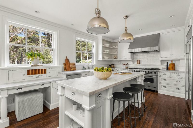 Designed in 1902 by noted architect Ernest Coxhead, The Waybur House at 3232 Pacific Avenue is a landmark Brown Shingle residence situated on the Presidio wall along the coveted 3200 block of Pacific Avenue. Recognized on the National Register of Historic Places and featured in Shingle Style, Bay Area Houses, and Here Today, the home is widely regarded for its sophisticated Mannerist'' faade, anchored by a signature Palladian window that reflects its refined architectural character. This 4-bedroom, 3.5-bath residence offers approximately 3,975 sq. ft. (per floor plan) and showcases a thoughtful layout with a grand formal living room featuring a fireplace and floor-to-ceiling windows framing picturesque Presidio views, an elegant dining room / secondary living space with fireplace and built-in bookshelves, and an open chef's kitchen with an adjacent breakfast room or flexible living area. The upper level includes a spacious primary suite with a spa-like bath and soaking tub, along with three additional bedrooms. A lower-level family/media room with full bath provides additional living space. Positioned directly along the edge of the Presidio, the home presents formal elegance to the street while stepping down dramatically at the rear, capturing sweeping views across the surrounding natural landscape. Part of a distinguished architectural ensemble including homes by Maybeck, Polk, and Morgan, this offering combines architectural significance with a prime Presidio Heights location near Sacramento Street dining, the Marina, and everyday conveniences.