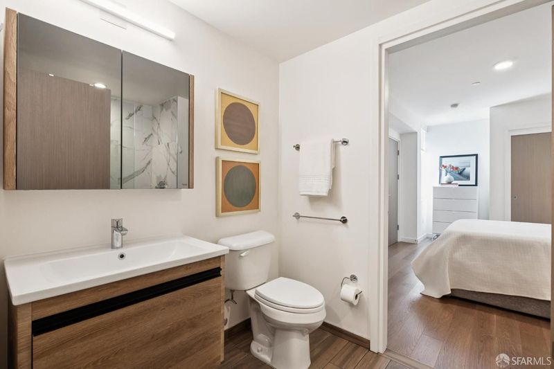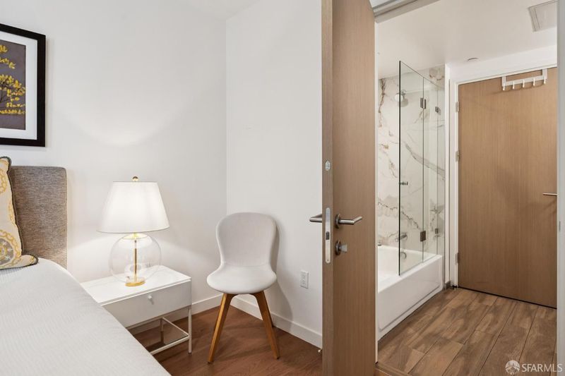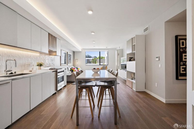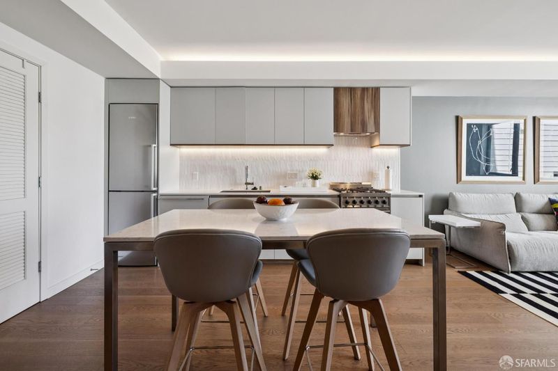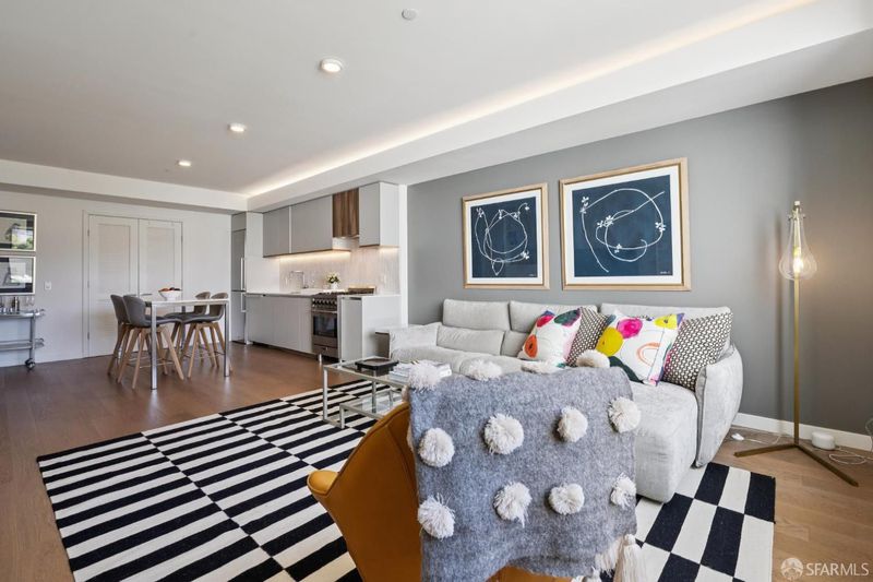 Residence #208 at Maison au Pont offers modern Marina living in a thoughtfully designed 1-bedroom, 1-bath home. An open-concept living, dining, and kitchen layout creates a bright, airy space with clean lines, modern finishes, and a neutral palette that allows you to make it your own. Garden views from the living space offer a sense of calm while remaining moments from the energy of Chestnut Street and the Marina Green. Building amenities include a shared rooftop deck with Golden Gate Bridge and water views, a welcoming lobby, dog wash station, and bike storage. In-unit laundry and 1-car parking add everyday convenience. Just steps to shopping and transportation, with the bay at your doorstep.