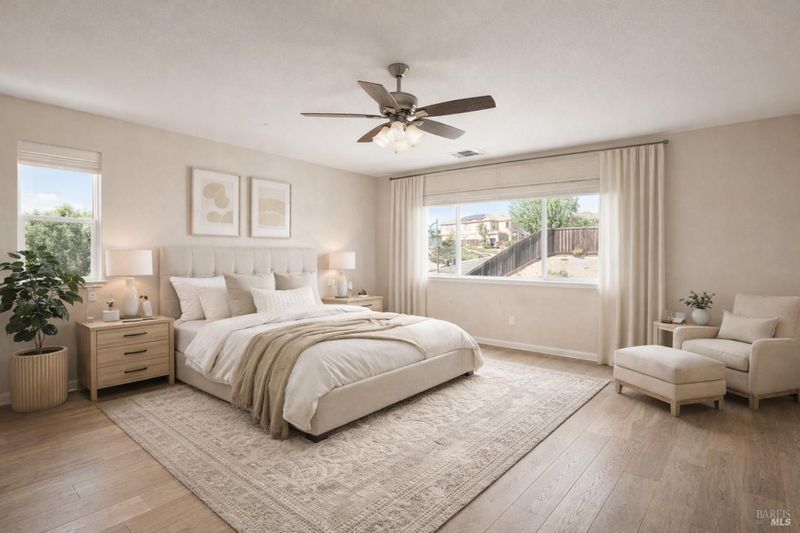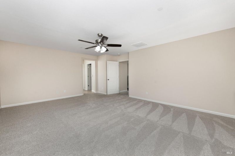 Expansive Layout, Oversized Rooms & Incredible Backyard Living in Paradise Crest! Welcome to this beautifully maintained home offering generous living spaces and an exceptional indoor-outdoor lifestyle. Upstairs features a huge loft perfect for a media room, game room, or additional living space. Just off the loft are two spacious bedrooms connected by a Jack & Jill bathroom, creating an ideal setup for family or guests. The oversized primary suite offers a true retreat with dual sinks, soaking tub, separate shower, and walk-in closet. The main level showcases an open-concept design with a large kitchen flowing seamlessly into the family room with a cozy gas fireplace. The kitchen is equipped with granite countertops, stainless steel appliances, an island, walk-in pantry, and dining area with direct backyard access. A downstairs bedroom, full bathroom, and private office with double-door entry provide flexibility for guests, remote work, or multi-generational living. Step outside to a huge lot designed for both entertaining and functionality. Enjoy a full-width covered lanai spanning the entire rear of the home, creating the perfect shaded outdoor living space. The terraced backyard features orange, donut peach, guava, apricot, plum, apple, lemon, pomegranate trees, and rose bushes. A gardener's delight! Wide side yards with gated access provide room for a boat, trailer, or additional storage. Recent updates include fresh interior paint and new carpet. Additional highlights include dual-zone HVAC, leased solar, upstairs laundry with built-in cabinetry, and low-maintenance landscaping. Ideally located near Paradise Valley Golf Course, with nearby dining and outdoor enjoyment, plus convenient access to shopping, restaurants, Travis Air Force Base, and easy access to Highway 80 and Highway 12. Check out Suisun Valley's award winning wineries, seasonal fruit stands, olive oil, bike and hiking trails, and so much more! The best of all worlds! Don't Miss Out! This ONE has YOUR Name on IT!