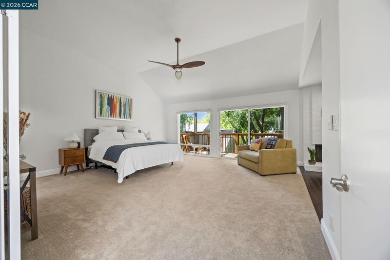 Turnkey living in coveted Summit Ridge! This light-filled 2,433 sq ft townhome is ideally located on a peaceful cul-de-sac, surrounded by open space and scenic hiking trails. A thoughtfully designed floor plan offers seamless flow for everyday living and entertaining. The updated kitchen features refreshed cabinetry (2025), white subway tile backsplash, stone countertops, stainless steel appliances, and a sunny dining area. The formal dining room opens to a private, tree-lined deck, while the spacious living room impresses with soaring ceilings, a fireplace, and abundant natural light. The expansive primary suite is a true retreat with a private balcony, fireplace, spa-like bath, and custom walk-in closet. A versatile bonus space off the suite is perfect for a home office, gym, or den. Two additional bedrooms share a dual-vanity hall bath. Approximately $77K in upgrades include a heat pump HVAC (2023), EV charger (2023), kitchen updates (2025), interior paint (2026), and a new roof scheduled for installation. The community also features modern fiber cement siding (2022) for enhanced curb appeal and fire resistance. Additional highlights include hardwood floors, dual-pane windows, laundry room, and attached 2-car garage. Enjoy pool, clubhouse, greenbelt, and top-rated Lafayette schools—just minutes to BART, freeways, and downtown Lafayette and Walnut Creek.
