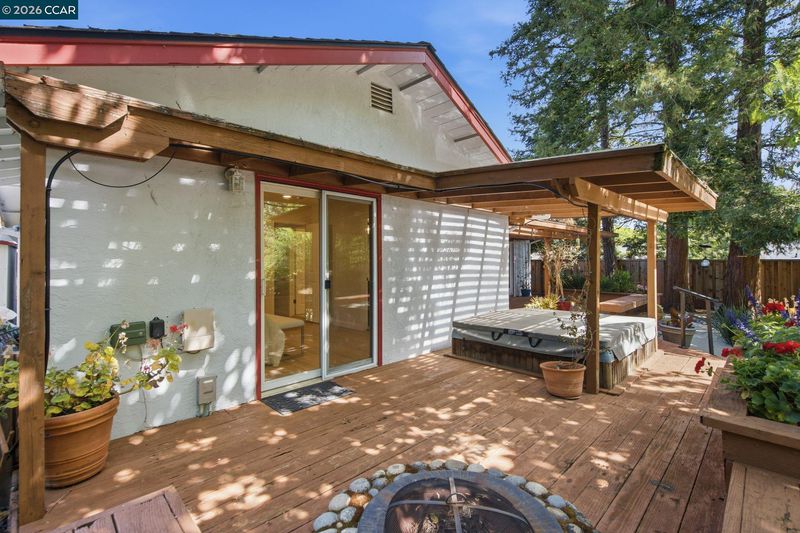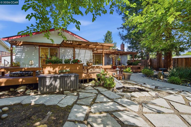 Nestled in a serene, park-like setting among majestic redwood trees in the heart of the Virginia Hills neighborhood, this exceptional property offers a rare blend of privacy, beauty, and a relaxing lifestyle. A spacious covered deck invites year-round enjoyment, overlooking a tranquil water feature, relaxing hot tub, and an inviting outdoor fireplace—creating the ultimate backdrop for both peaceful evenings and memorable gatherings. This charming three-bedroom, two-bath residence is ideally situated in the highly desirable Virginia Hills neighborhood of Martinez. Thoughtfully updated bathrooms, refinished hardwood flooring, and fresh interior paint enhance the home’s light, bright, and move-in-ready appeal. Designed with both comfort and entertainment in mind, the home seamlessly connects indoor and outdoor living spaces, making it perfect for hosting family and friends. The expansive backyard also features a versatile cement pad at the rear of the property—ideal for a future ADU, artist’s studio, workshop, or additional creative space. A truly special opportunity to own a private retreat in one of Martinez’s most sought-after communities. Close to shopping, entertainment, and restaurants.