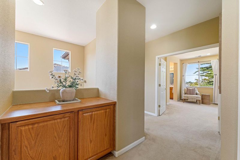 Welcome to this beautifully maintained 4 bedroom, 2.5 bathroom home where comfort, style, and natural surroundings come together seamlessly. Situated in a park-like setting with a serene greenbelt backdrop, this property offers a rare sense of privacy and tranquility. The thoughtfully designed outdoor space features immaculate landscaping, an appealing paver walking path, and a spacious patio accented by a soothing backyard water feature perfect for relaxing or entertaining. Inside, the open concept layout creates an inviting flow between the kitchen and living areas. The kitchen boasts a generous eat-in island, ideal for gatherings, while the living room is anchored by a cozy gas fireplace. Upstairs, the primary suite serves as a peaceful retreat, complete with ocean views, a walk-in closet, and ample natural light. Additional highlights include an attached 2 car garage with a built-in workshop, offering both convenience and functionality. Located less than a mile from 2 highly rated shopping centers and an oceanside recreation trail, this exceptional home combines everyday convenience with the benefit of coastal living. A truly special opportunity ready for its next chapter.