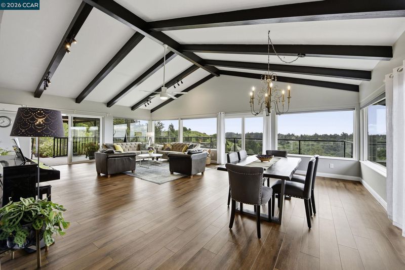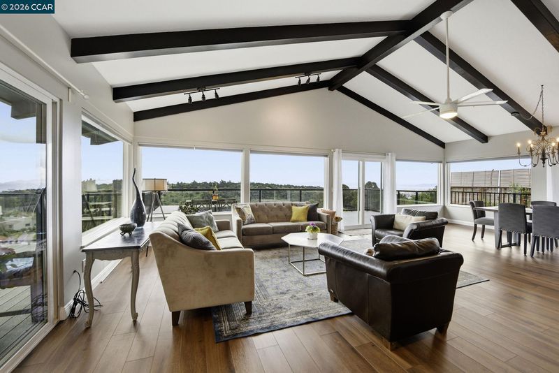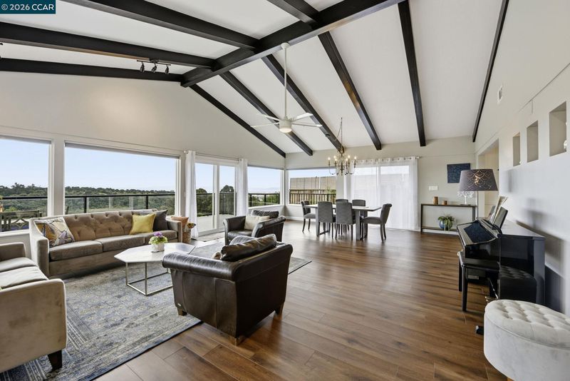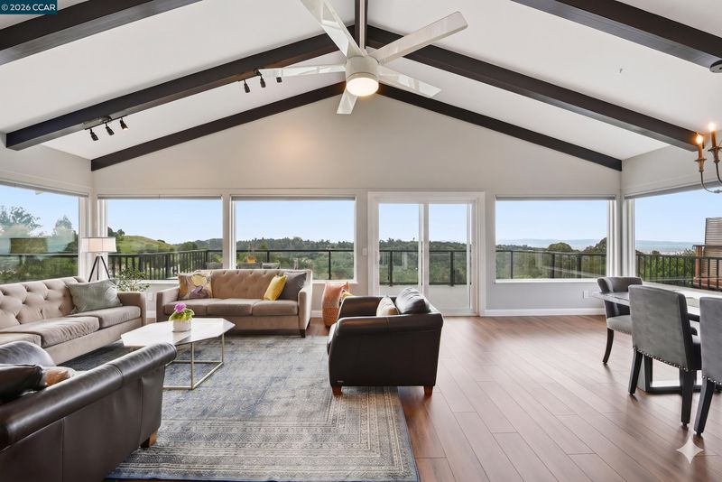 Expansive views take center stage in this beautifully updated single-level 4-bedroom home, tucked away on a quiet court. Designed for indoor-outdoor living, the property features a private enclosed courtyard and two rear decks, ideal for gathering, dining, and taking in the surrounding landscape. From the moment you enter, the views draw you through the home. Vaulted ceilings, large picture windows, and sliding glass doors flood the space with natural light and create a seamless connection to the outdoors. The layout flows past the dining area into an open-concept kitchen with a large island, breakfast nook, and separate butler’s pantry, all opening to an expansive great room. Step outside for al fresco dining on the deck, overlooking a lush backyard with fruit trees and seasonal blooms. The flexible floor plan includes a separate living room and a privately positioned owner’s suite with direct patio access. Three additional bedrooms and two remodeled bathrooms are located on the opposite wing. Owned solar, newer roof and windows, and a location offering access to nature, recreation, and commuter routes, all within the peaceful Sequoyah Heights setting. Close to Hwy 580, Oakland Zoo, and Skyline trails. Come see this home today!