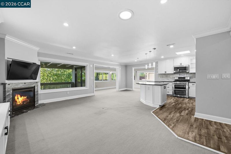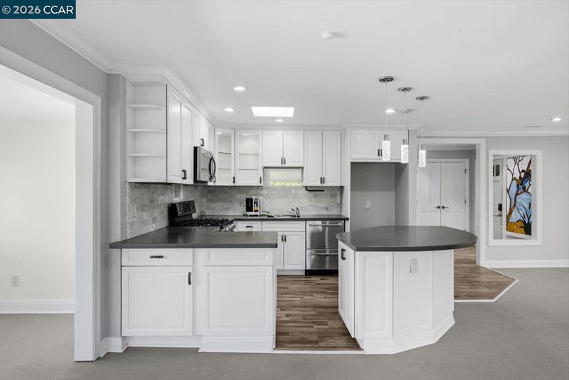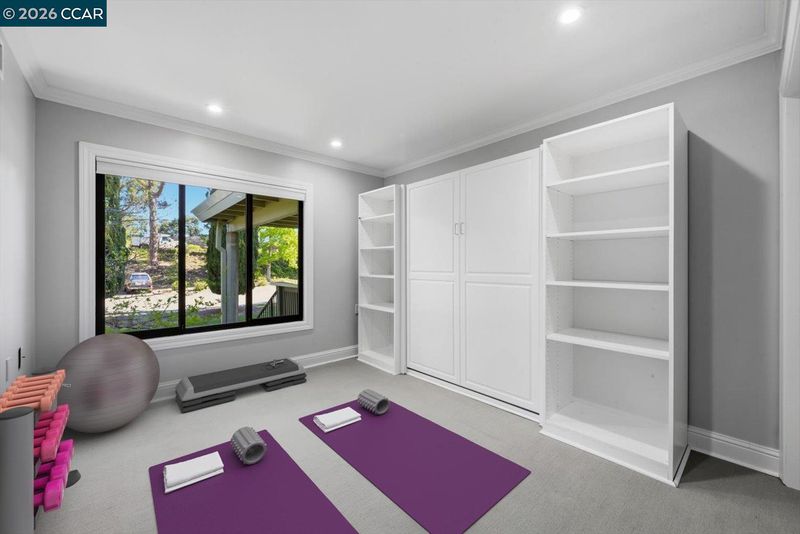 Welcome to 2741 Golden Rain Rd #7, a spacious upper-level Sequoia Wrap 2BD/2BA co-op offering approx. 1,466 sq ft in the sought-after 55+ Rossmoor community. The open living and dining area is filled with natural light and features a fireplace and built-in entertainment center. A covered balcony spans the home, providing a peaceful outlook and space for outdoor seating or dining. The updated kitchen includes modern appliances, ample cabinetry, and a large breakfast bar/island. A versatile bonus room offers flexibility for an office, reading, or exercise space. The primary suite features an expansive closet and ensuite bath with dual vanities, bidet, and walk-in shower with seating. The second bedroom includes a Murphy bed for added flexibility. Nearby is a bath with large vanity and walk-in shower. Additional features include dual-pane windows, skylights, generous storage, and a private parking space and cabinet ideal for golf clubs or seasonal items. There’s also a community gathering space nearby. Rossmoor offers golf, fitness, pools, tennis, trails, clubs, and more. Buyer must qualify. Monthly HOA dues. Minutes to downtown Walnut Creek, shopping, dining, and freeway access.
