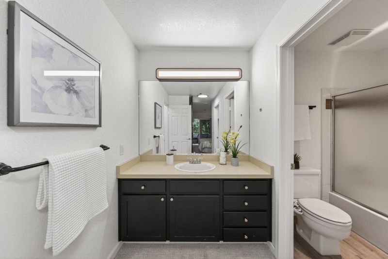 Situated in the desirable Sunnyvale Fairways community overlooking the Sunken Gardens Golf Course, this move-in ready, condo presents a fantastic starter opportunity. The open-concept floor plan seamlessly connects the kitchen, dining, and living areas, creating an ideal space for both everyday living and entertaining. The spacious bedroom features a large walk-in closet and en-suite bathroom, while multiple sliding glass doors from both the living area and bedroom lead to a private patio, perfect for enjoying warm summer evenings. Recent upgrades include fresh interior paint, updated light fixtures, new carpet, and a newer thermostat. Additional conveniences include an in-unit washer and dryer, one dedicated underground parking space, and ample guest parking. Community amenities include a pool, spa, clubhouse, and playground, with HOA dues covering water and garbage. Ideally located just minutes from Apple Park and major Silicon Valley tech campuses, with easy access to commute routes, shopping, and dining. Do not miss the opportunity to live in the highly sought-after Sunnyvale Fairways community.