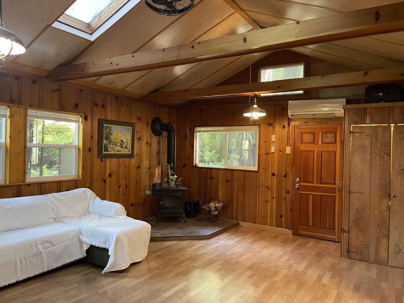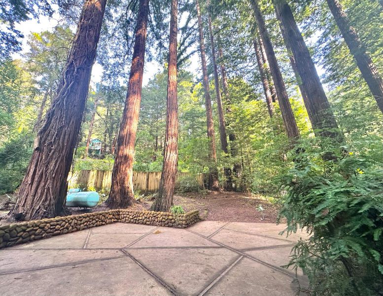 Cozy redwood cabin retreat! Ideal for a weekend getaway by the fireplace or as a full-time residence. Has easy access on a County road along the scenic Hwy 9 commute to the Silicon Valley corridor. Lot is mostly flat with some gentle sloping. Has a gravel driveway with boat or RV parking (or three vehicles).This unique mountain property has a fire hydrant adjacent, no HOA, no road association, no well association and is connected to San Lorenzo Valley water district. The fully fenced backyard features a spacious concrete picnic area tucked beneath beautiful redwoods. The inviting front porch opens to a charming living space. Modern features: high-speed internet, split heating/AC, tankless water heater, ceiling fan, indoor laundry, and updated wood fireplace and surround. Adorable kitchen with vintage touches and open-to-living room bar seating. Bath updated by previous owners. The second bedroom is on the small side, great for an office or twin-sized bed. Minutes to Big Basin Redwoods State Park, Garrahan Park, The Sawmill Restaurant & Alehouse, and downtown Boulder Creek. This property is turnkey indoor-outdoor living in a nostalgic setting. Buyer to verify all.