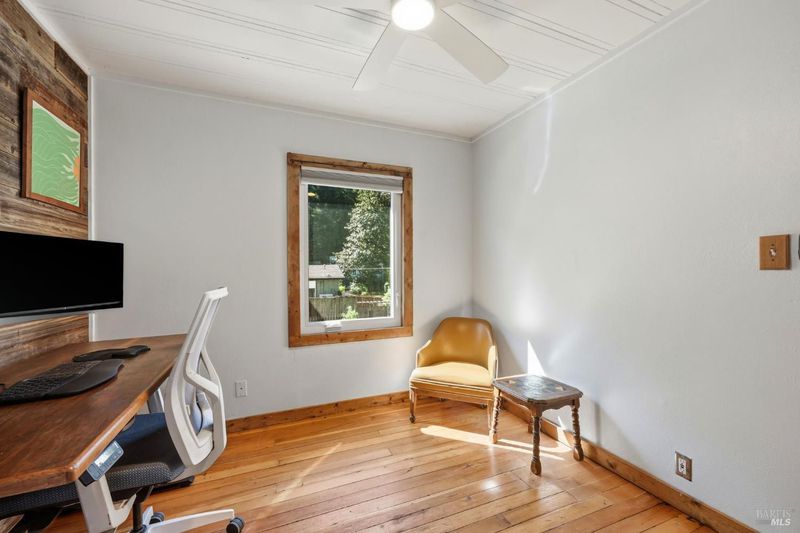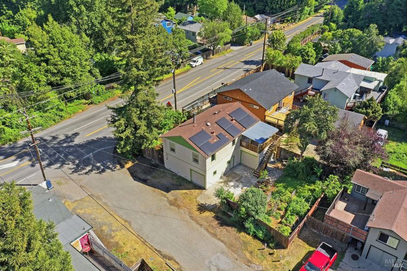 Experience the best of Russian River living in this sun-drenched miniature homestead. Perfectly situated just minutes from Mother's and Sunset Beaches, this property offers a rare, light-filled lot along the Russian River. The yard is a gardener's dream, boasting established fruit trees, garden beds and vibrant perennial pollinator plantings. Inside, the home features three spacious bedrooms and 1.5 baths, elevated by warm hardwood flooring throughout. The chef's kitchen is the heart of the home, featuring sleek stainless steel countertops, a butcher block island, premium KitchenAid dishwasher and large pantry. A recently remodeled main bath showcases local tile work with a large window to view the redwoods while you shower. Below the main living area, a large garage and shop space provides an expansive footprint for projects, gear storage, or a dedicated creative studio. Complete with new solar panels and ample guest parking, this home is as sustainable as it is inviting.