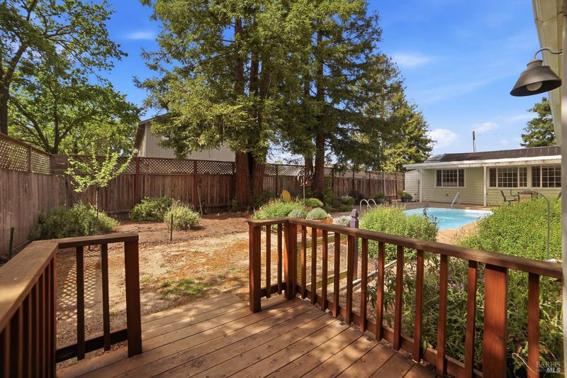 This distinctive property includes a charming single-story farmhouse, an inviting in-ground pool, and a detached workshop situated on a parcel of over 10,000 square feet. The farmhouse retains original features like golden oak hardwood floors and appealing built-ins but also boasts modern upgrades such as dual-pane windows and a newer furnace. The backyard is perfect for unwinding by the solar-heated pool. The well-equipped workshop, spanning more than 950 square feet, comes with a full bathroom and a mini split system for heating and cooling. One gated side yard contains two storage sheds, while the other has a gated driveway leading to the workshop. Majestic redwoods, cypress trees, and roses enhance both the front and backyards. This versatile property truly serves as a delightful oasis.