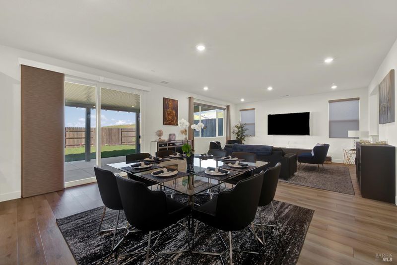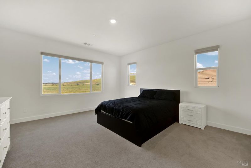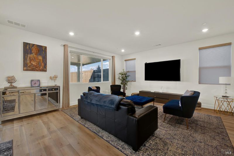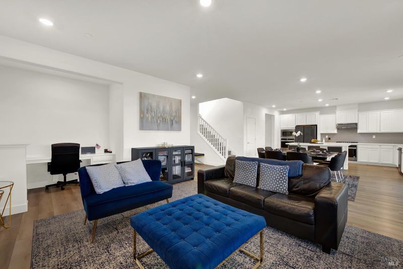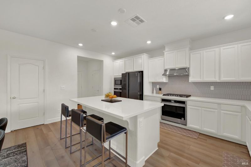 Beautiful like-new home offering 4 bedrooms plus loft, including a full bedroom and bath downstairs along with an additional half bath for guests, for a total of 3.5 baths. With approximately 2,787 sq ft of living space, this home features an open concept floor plan ideal for both everyday living and entertaining. The downstairs living area showcases luxury vinyl plank flooring, while the kitchen is equipped with quartz countertops, custom tile backsplash, stainless steel appliances with double oven, a spacious island, and pantry. Adjacent to the family room is a convenient nook area perfect for a home office. Upstairs you'll find a large loft providing additional flexible living space, along with a grand primary suite offering great hill views. The primary bath features tile flooring, a soaking tub, separate shower, double vanity, and a walk-in closet. Situated on a large lot backing to open space with scenic hill views, this home offers privacy and a peaceful setting. The extended driveway provides ample additional parking, and the covered patio creates the perfect outdoor space for gatherings and relaxation. Complete with a spacious 3-car tandem garage, this well maintained and move-in ready home combines modern upgrades with a highly desirable location.