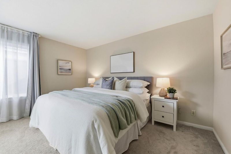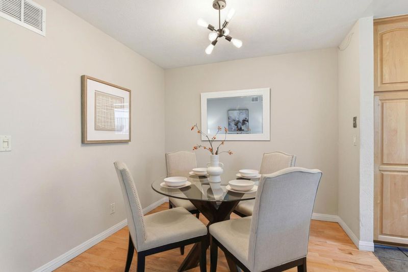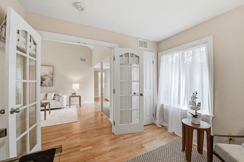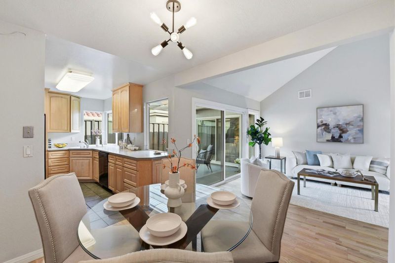 Welcome to 5655 Sunflower Lane, a rare single-story 3-bed, 2-bath townhome nestled in the quiet Park Villa Peppertree community. Designed for ultimate privacy, this unique floor plan shares only one single garage wall, offering the quiet feel of a single family home. Inside, you'll find a bright and inviting living space featuring vaulted ceilings, rich hardwood flooring, dual-pane windows, and abundant natural light throughout. The kitchen offers warm maple cabinetry and gas cooking, perfect for everyday living and entertaining. The primary suite provides a peaceful retreat with direct access to the rear patio, perfect for quiet mornings and relaxing. Modern conveniences include central air conditioning, an interior laundry area, and an attached two-car garage. The home also features two private outdoor spaces: a charming gated front courtyard and a serene back patio, ideal for entertaining or unwinding. Residents enjoy access to community amenities including a pool and clubhouse, with nearby outdoor destinations such as Guadalupe Creek Trail and Almaden Lake Park with scenic paths, playgrounds, and picnic areas. Ideally located in San Jose, this home is just minutes from shopping, dining, and local farmers' markets, with easy access to Highway 85 and highly regarded schools.