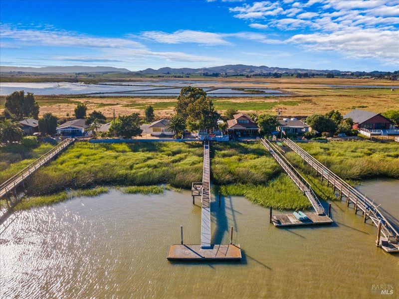 Serenely situated in a unique location along the banks of the Napa River, this bright and airy 3-bedroom, 2-bath home is a rare blend of natural beauty and refined living, perfect for both full-time residence and weekend escape. Approaching the home, you pass vineyards and vast fields with horses and cows. The chef-worthy kitchen, featuring an upscale Italian-imported range, flows seamlessly into an expansive living area where you are treated to panoramic views of the river and surrounding hills. The main-level primary suite provides a peaceful retreat, featuring a separate sitting room or home office, a full bath, and a private balcony overlooking the river delta. Ideal for entertaining, the glass-walled dining room opens to a sprawling rear deck perfect for relaxing, sunbathing, or dining and sipping wine under the stars. The entry level has 2 bedrooms, a full bath, a laundry closet, and a sitting room/office with a large closet. Listen to the calming sounds of birds, aquatic life, the flowing river, and gentle breezes. A private dock set adjacent to natural wetlands allows direct river access, completing the quintessential Napa Valley lifestyle. This home is situated just an hour from the Golden Gate Bridge, yet it feels a world away. Welcome home.