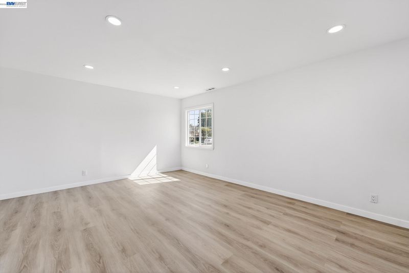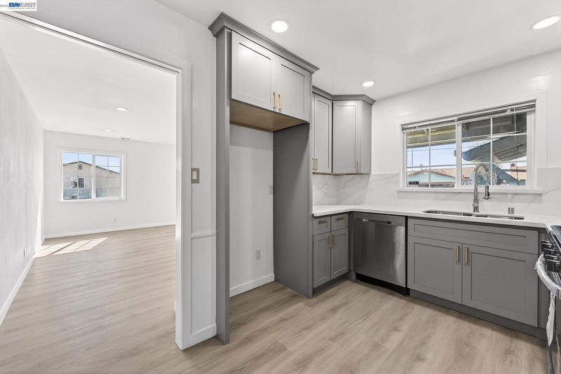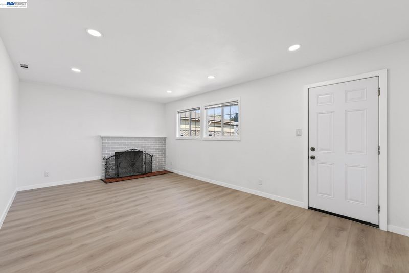 Discover 15524 Montreal St, a stunningly updated 1,419 sq ft rancher built in 1959 in the heart of San Leandro. This 3-bedroom, 2-bathroom home perfectly balances mid-century character with sleek, modern upgrades. Step inside to an open living area featuring wide-plank flooring, recessed lighting, and crisp white walls that enhance the natural light. The chef-inspired kitchen is a showstopper, boasting grey shaker cabinetry with gold hardware, white marble-style counters, and premium stainless steel appliances. Relax in the separate family room, centered by a contemporary painted brick fireplace. Both bathrooms have been fully renovated with designer finishes, including marble- patterned surrounds, new vanities with matte black fixtures, and a primary bath with a light-up LED mirror. The spacious bedrooms offer clean lines and ample storage. Outside, the property features a two-car garage and a generous backyard with a large concrete patio, perfect for entertaining, alongside a level lawn area and a storage shed. This move-in-ready gem offers the ideal blend of style and comfort!
