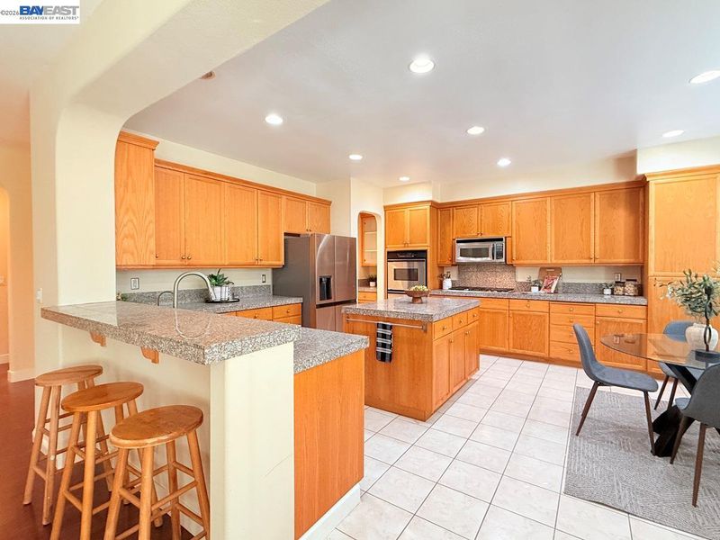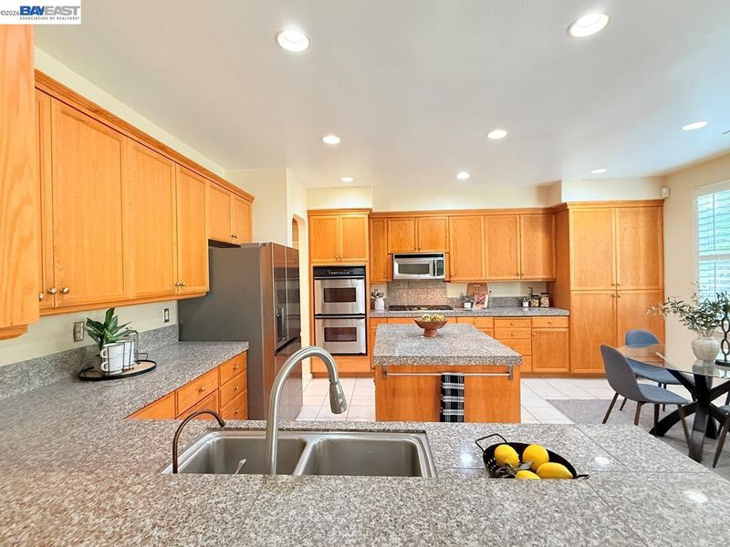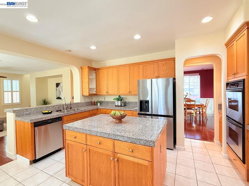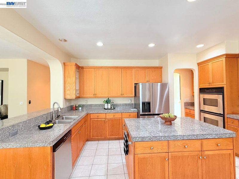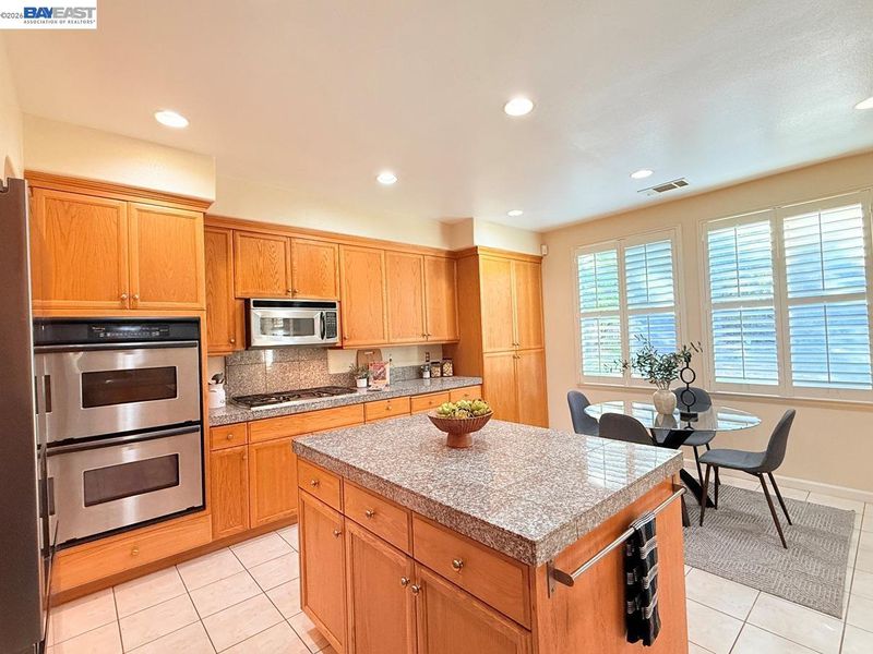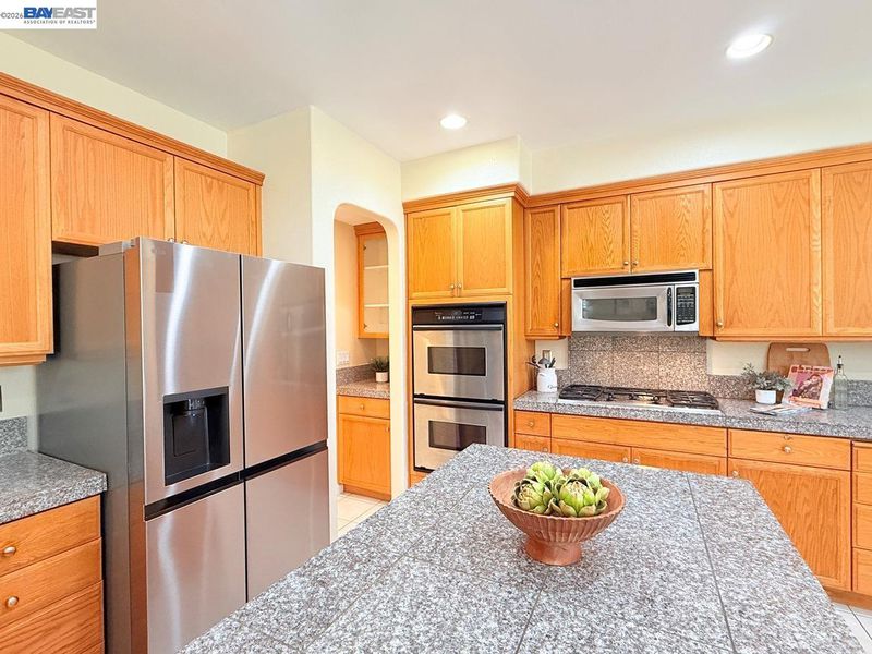 - Dishwasher, Double Oven, Gas Range, Plumbed For Ice Maker, Microwave, Oven, Refrigerator, Dryer, Washer, Gas Water Heater, Tile Counters, Eat-in Kitchen, Disposal, Gas Range/Cooktop, Ice Maker Hookup, Kitchen Island, Oven Built-in