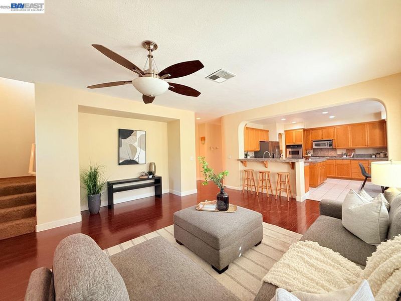Open House Sat 4/18, Sun 4/19 1-4 PM. Stunning 5-bedroom, 3-bath residence offering 3,604 sqft of beautifully designed living space on an huge ~12,000 sqft lot, nestled in a quiet, desirable neighborhood. Step inside to soaring ceilings, a grand staircase, a huge living room & an elegant formal dining room. The open-concept kitchen and family room create the perfect space for entertaining, featuring abundant cabinetry, granite tile countertops, a large island, and stainless steel appliances including a new refrigerator. The main level includes a bedroom, full bath, and laundry room. Upstairs, enjoy 4 spacious bedrooms plus a huge bonus room, perfect for a home gym or media space. The luxurious master bedroom suite boasts a private balcony with sunset views and a spa-inspired bathroom. Fresh interior paint, new laminate flooring in the family and dining rooms, new luxury vinyl plank flooring in the downstairs bath and master BR closet. Plantation shutters add timeless elegance throughout. The backyard is an entertainer’s dream with a large patio, basketball court, tranquil pond with waterfall, and park-like setting. Low-maintenance front yard with artificial turf. Spacious 3-car garage and a long driveway. Conveniently located near schools, shopping, dining, parks, freeway, eBART.
