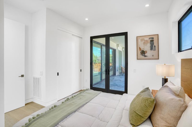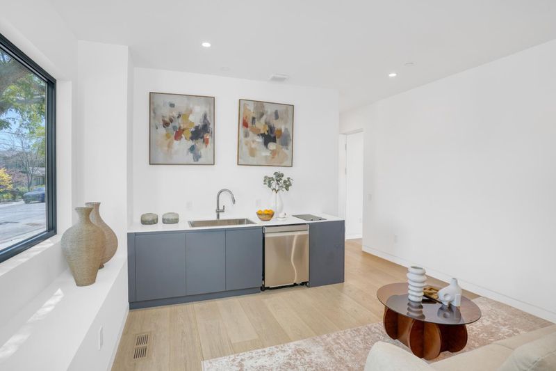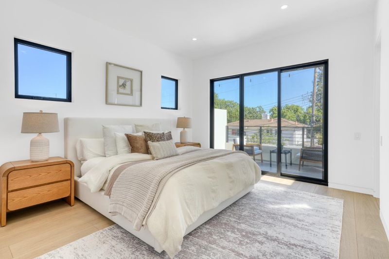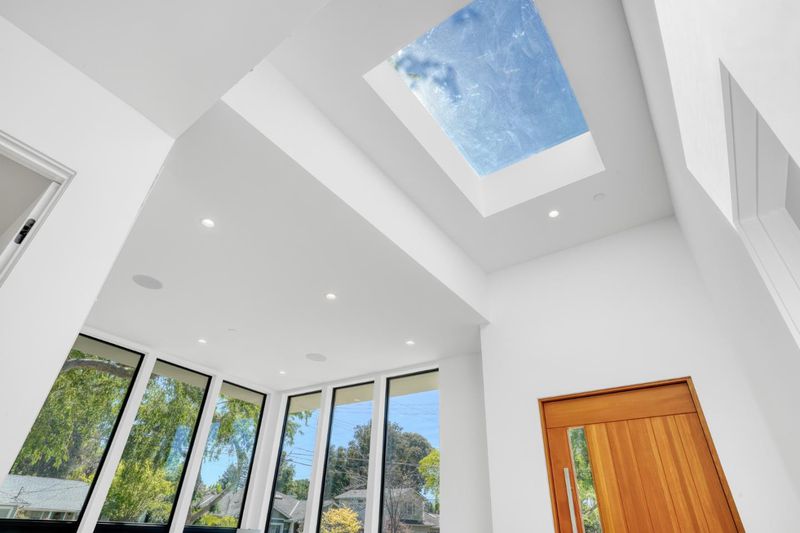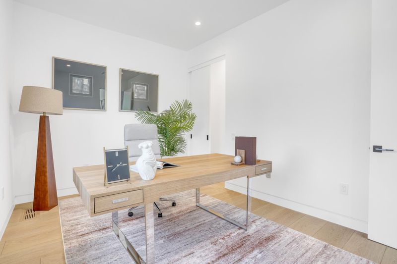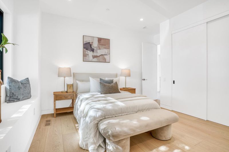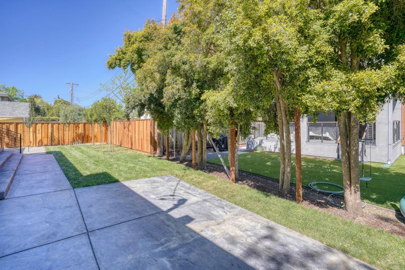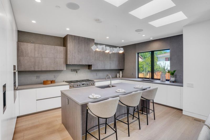 Modern new construction in desirable Midtown Palo Alto, offering approximately 3,440 sq ft of refined living space on a 7,387 sq ft lot, including an attached JADU. Designed with an emphasis on natural light and clean architectural lines, the home features European wide-plank white oak flooring, skylights, and Marvin windows throughout. The open-concept great room flows seamlessly into the backyard through an oversized multi-panel sliding glass door for effortless indooroutdoor living. A custom slatted-wood staircase adds warmth and architectural interest. The chefs kitchen showcases Arrital (Italy) cabinetry with integrated panels, organized storage, and a premium Miele appliance suite: 8-burner cooktop, integrated refrigerator, wine cooler, and speed oven. A stone island, pot filler and full-height slab backsplash complete the space. The primary suite offers high ceilings and a serene ambiance, complemented by a spa-inspired bath with a soaking tub, curbless shower, radiant heated floors, double-sink vanity, smart toilet, and fixtures by Rohl. An attached JADU offers flexibility for guests or workspace. The backyard extends outdoor living, while an attached garage and driveway provide convenient parking.