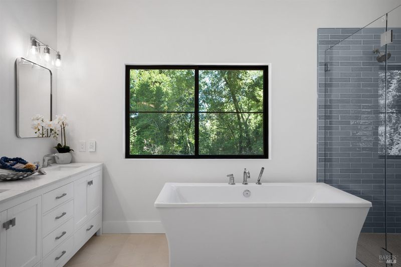 - Double Sinks, Low-Flow Shower(s), Low-Flow Toilet(s), Radiant Heat, Shower Stall(s), Tub, Walk-In Closet, Window