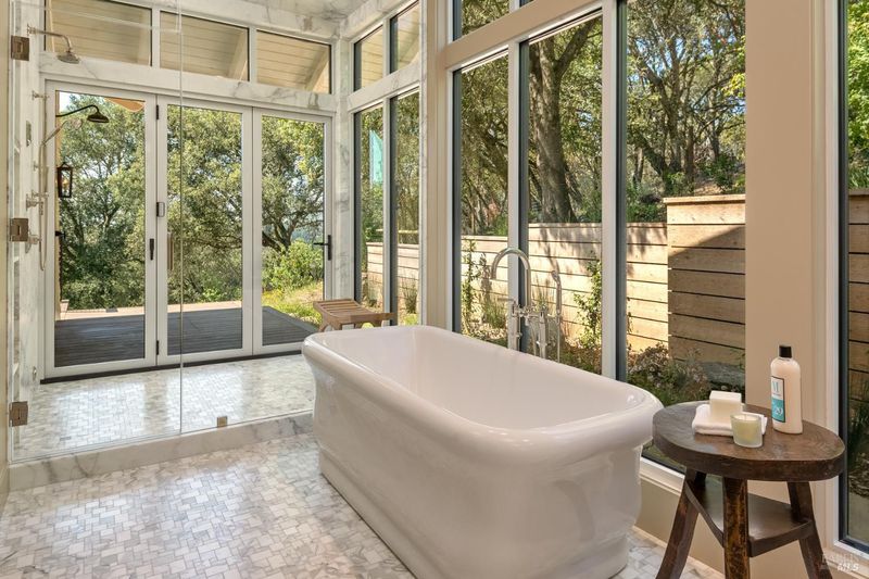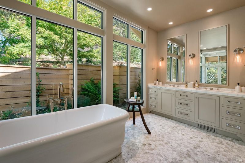 - Double Sinks, Multiple Shower Heads, Outside Access, Radiant Heat, Soaking Tub, Steam, Walk-In Closet