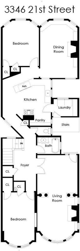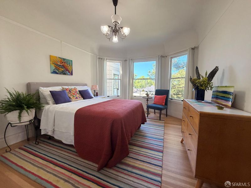 Quality-built Edwardian penthouse condo offers the perfect combination of vintage charm, modern updates, and a luminous, functional layout on a tree lined street. The top-floor residence in a boutique 3-unit building features large bedrooms, numerous closets, convenient split bath, and abundant natural light throughout its beautifully proportioned interiors. Features include upgraded hardwood floors, French doors, curved glass Bay windows, quartz counter, stainless appliances, dishwasher, laundry room, S-x-S garage leased parking option, shared garden with Redwood tree, 2006 Condo Conversion, fresh interior and exterior paint, newly refinished wood floors, low HOA dues of $250/mo., large ground floor deeded storage room overlooking a serene garden. Exceptional Location in Valencia Corridor, Dolores Heights with nearby Dolores Park, shops, services and restaurants for a vibrant city lifestyle.