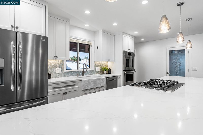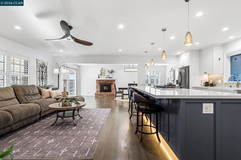 Tucked away on a quiet court in Concord’s desirable Clayton Valley area, 3875 Logan Court offers a thoughtfully updated single-story layout with 3 bedrooms, 2 bathrooms, and approximately 1,402 sq ft. The home features strong curb appeal with a stamped concrete driveway, while the front and backyard are designed for low maintenance with river rock, native landscaping, and clean pathways. Dedicated RV/Boat parking adds flexibility and convenience. Inside, you’ll find beautifully laid modern oak flooring throughout the main living areas, complemented by tile plank flooring in the kitchen. The inviting living room is anchored by a fireplace, while dual pane windows, exterior sun shades, and plantation shutters enhance comfort and efficiency. The kitchen stands out with a unique farmhouse sink, an expansive marble island with a built-in five-burner range, double ovens, and a pantry, offering both function and style. The backyard is built for entertaining featuring beautiful pavers, a covered patio with pergola, electrical for a mounted TV, and a bocce ball court. A large side yard shed adds extra storage. Complete with a two-car garage and a prime location near parks, schools, shopping, and commuter routes, this home offers the ideal blend of comfort and convenience.