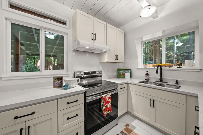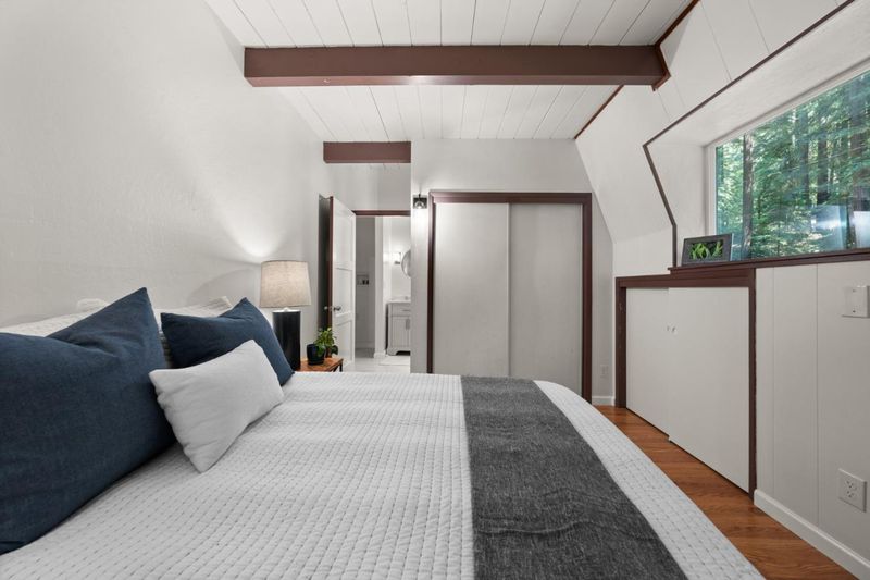Tucked at the end of a quiet cul-de-sac in the Santa Cruz Mountains, this Felton home offers the kind of space, privacy & lifestyle that is getting harder to find at this price point. With approximately 1,875 sq ft of living space, this 4-bedroom, 2.5-bath home includes a bonus office space, extra storage & a flexible layout offering more room to live, work, host & unwind. Inside, natural light pours in through skylights & large windows framing peaceful forest views. Open beam ceilings, vaulted accents, laminate flooring, double pane windows & a cozy pellet stove create a warm, inviting feel. The recently remodeled kitchen features electric appliances, while the ground-floor bedroom & full bath add convenience for guests. Step outside to relax on the deck, fire up the BBQ, & enjoy your own redwood fairy circle with space for hammocks, picnic table & space for kids & pets to play. You may even hear the soothing sounds of nearby Gold Gulch Creek. With ample parking, including room for oversized vehicles & just minutes to downtown Felton, Santa Cruz & beaches, hiking & biking trails, Wild Roots Market, Humble Sea, Roaring Camp & Felton Music Hall, this is a special chance to enjoy cozy mountain living with extra bedroom count & square footage at an attractive value. You'll love it!