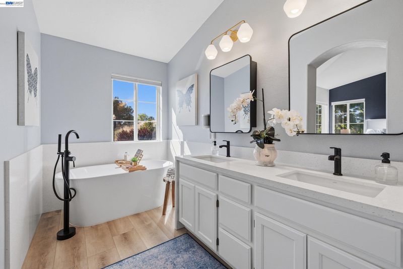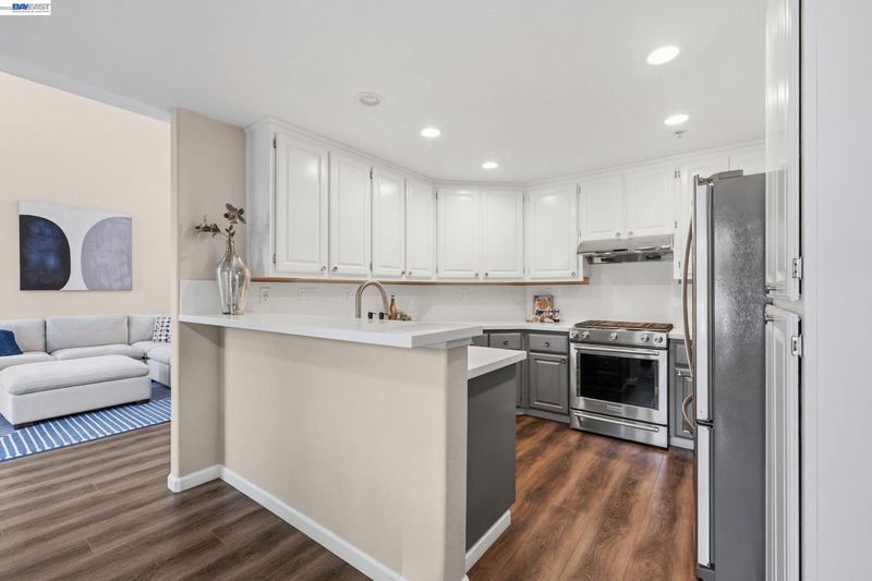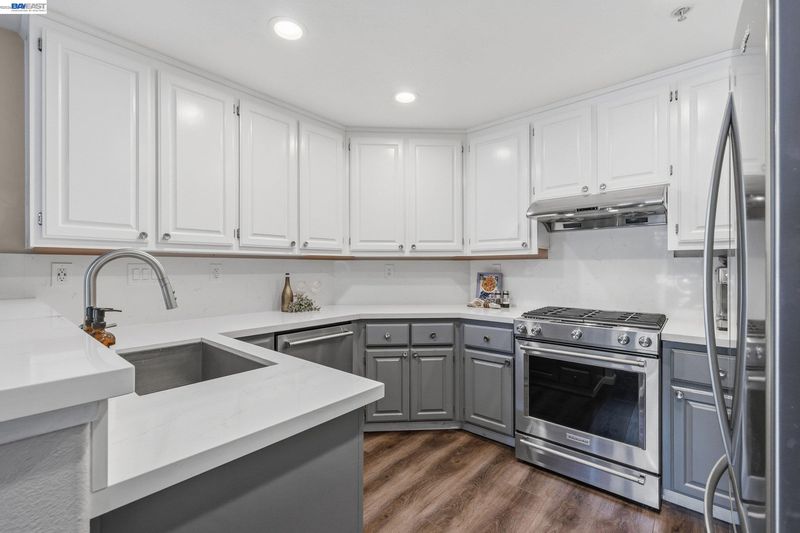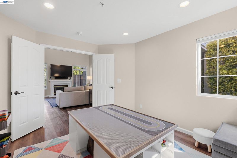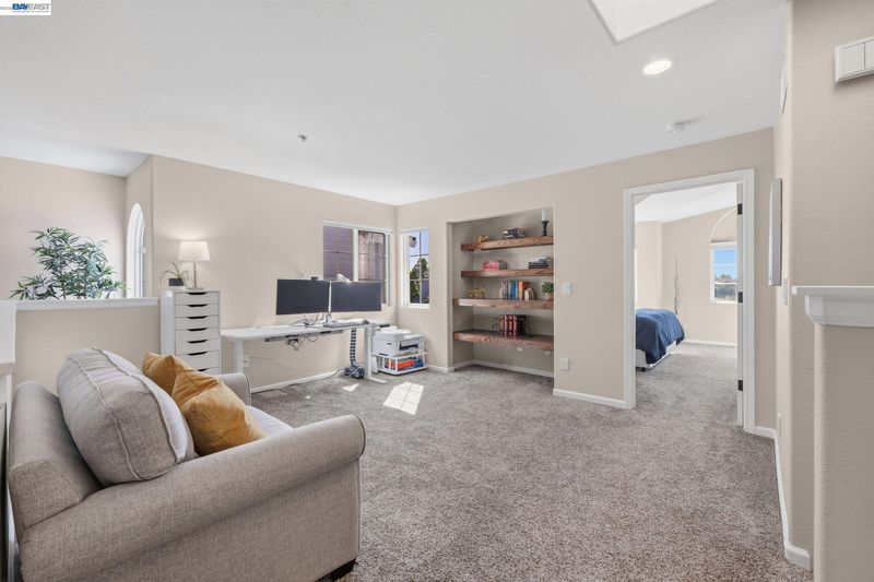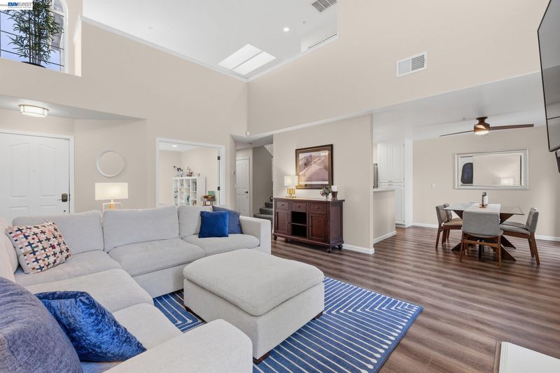 COMING SOON! This reimagined Portola Meadows townhome is move-in ready perfection with approx. 1,752 sq ft of modern luxury over two levels and fresh exterior paint. The stunning gourmet kitchen showcases sleek contemporary cabinetry, quartz countertops, and premium stainless appliances (KitchenAid and Whirlpool) flowing seamlessly to the dining area and family room with cozy fireplace – perfect for entertaining. Smart, flexible floor plan features a main-level bedroom and full bathroom, ideal for guests, home office, or multigenerational living. Upstairs, your spacious primary suite awaits with luxurious soaking tub, sleek stall shower, double vanity, and generous walk-in closet. The versatile loft offers endless possibilities for home office, media room, or creative studio, plus a second bedroom, bathroom, and convenient laundry. All three bathrooms feature chic, contemporary updates. Comfort and efficiency throughout with newer HVAC, central AC, double-pane windows, natural skylights, and beautiful newer vinyl plank flooring. Enjoy your private fenced backyard with patio for outdoor living. Attached 2-car garage provides secure parking. Resort-style community pool and spa! HOA covers exterior maintenance, hazard insurance, and reserves. Prime location near parks, I-580