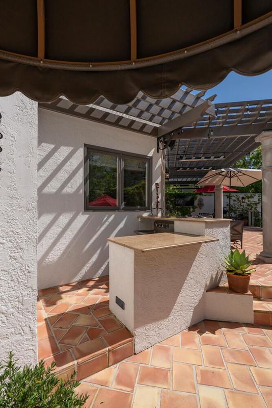 - Countertop - Stone, Dishwasher, Freezer, Hood Over Range, Island with Sink, Microwave, Oven Range - Built-In, Gas, Refrigerator, Wine Refrigerator