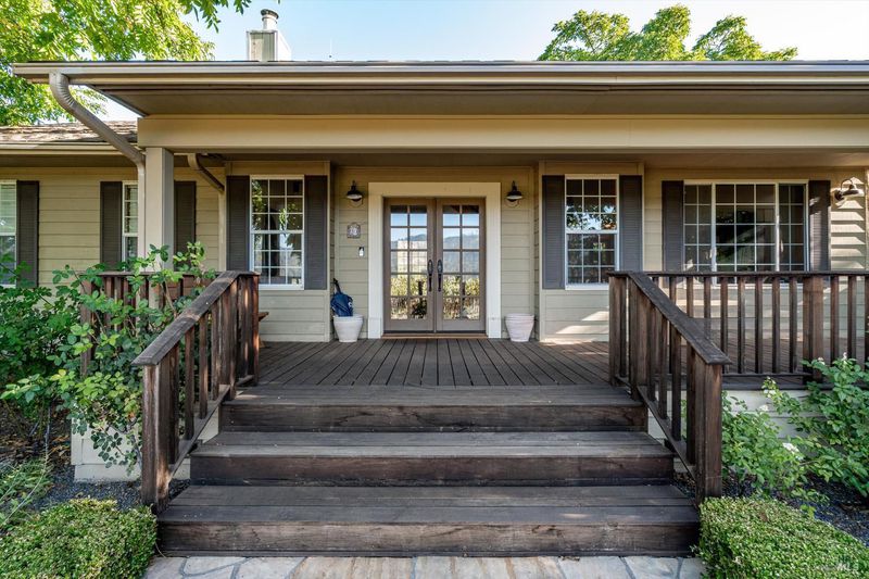 Exceptional vineyard views frame every angle of this quintessential country farmhouse perfectly sited on a quiet country lane just minutes from downtown Calistoga and even closer to destination resorts including the Four Seasons and Solage. The +/- 2,425 sq ft, two-story main residence offers three spacious bedrooms and four bathrooms, including a main-level primary suite with its own garden-deck entrance, leading to the rose garden and resort-style pool. Upstairs, two additional bedrooms enjoy captivating vineyard vistas. The main living space provides an airy great-room feel with wood flooring, a cozy wood stove, and a well-appointed kitchen with stainless steel appliances. A detached guest house offers additional flexibility for visitors or extended-stay guests. Outdoors, the grounds include vegetable beds, a workshop, and thoughtfully landscaped spaces for relaxing and entertaining. Completing the authentic Napa Valley experience is a boutique Cabernet Sauvignon and Merlot vineyard within this celebrated AVA, offering an extraordinary opportunity to embrace true wine-country living.