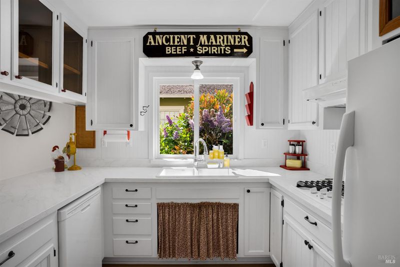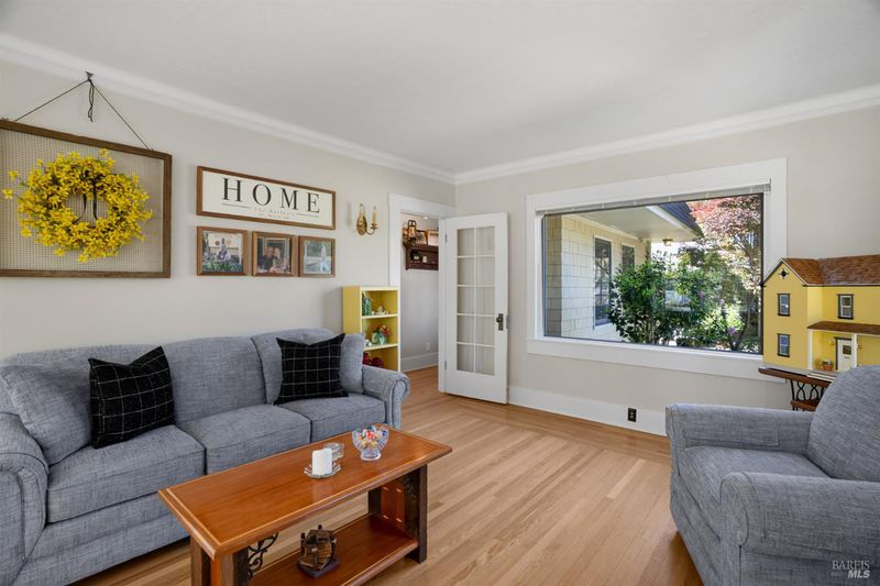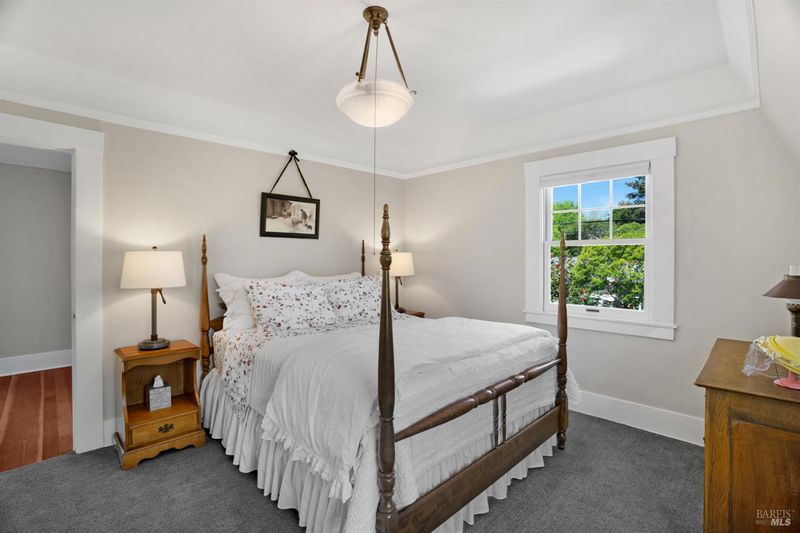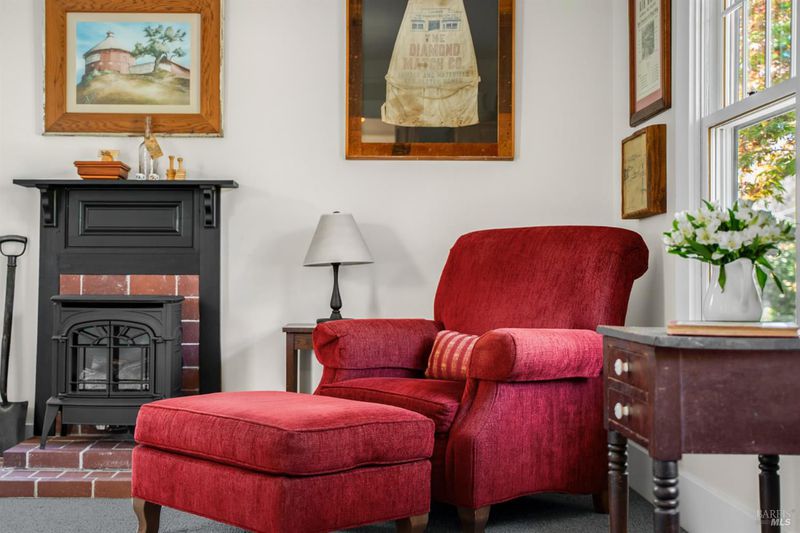 Light-filled and lovingly maintained, this charming Dutch Colonial blends timeless character with everyday comfort. Many period details remain, including hardwood floors, built-in cabinetry, and classic architectural touches. A cozy living room with a gas fireplace welcomes you, while the dining room flows seamlessly into a bright kitchen featuring white cabinetry, quartz countertops, and generous storage. The home offers 3 bedrooms and 2 full baths, including a first-floor primary suite with gas fireplace, a spacious walk-in shower, and large closet. Upstairs, find two additional bedrooms and a full bath with a clawfoot tub plus a small room that has been used in years past as a study, playroom, or extra sleeping space. Owned by the same family for over 75 years, this is a rare opportunity to own a piece of Santa Rosa history. Set on a picturesque street in the sought-after Santa Rosa Junior College neighborhood, known for its historic charm and central location, the home has a beautifully manicured front yard and a sunny backyard with potting shed, multiple seating areas and raised garden beds. Modern conveniences include dual-paned windows and a heat pump downstairs for both heat and air-conditioning. Original 1-car garage mimics the distinctive architecture of the home.