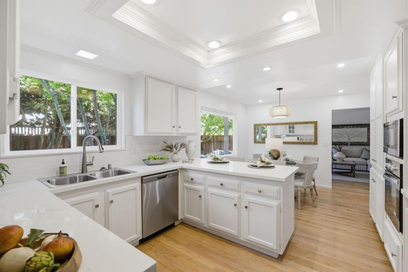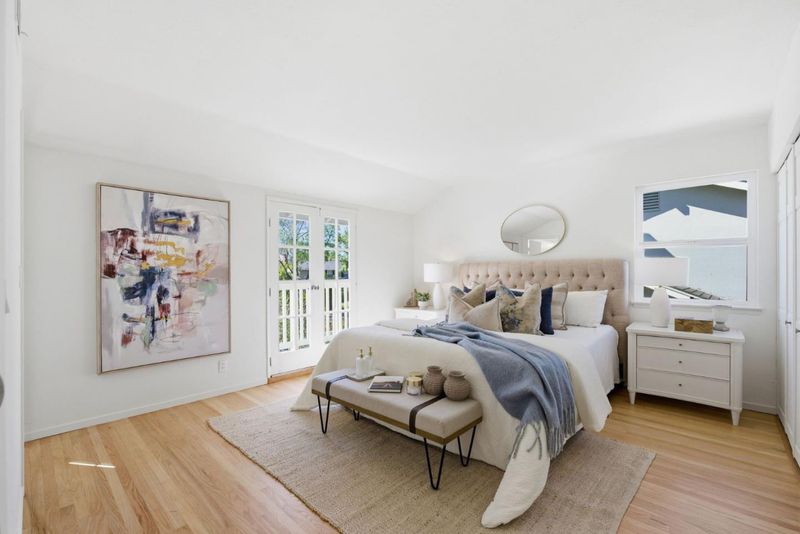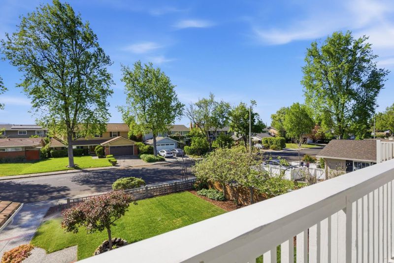 Nestled in the highly sought-after Old Orchard neighborhood just moments from Las Palmas Park, this tastefully updated traditional-style residence offers exceptional space, style, and versatility. The expansive 6BD/3BA home has been thoughtfully curated with new interior/exterior paint, refinished hardwood floors, professionally designed landscaping & updated kitchen & bathrooms. The lower level is ideal for daily living & entertaining, featuring an updated kitchen with new stainless appliances, quartz counter tops, subway tile backsplash and a charming breakfast nook & adjoining dining room. The spacious living room provides an inviting gathering space with a cozy fireplace, while the separate family room offers versatility as a media room or office/den. A bedroom & full bathroom complete the lower level. Upstairs, 5 generously sized bedrooms offer ample space for family, guests or a home office complemented by an updated hall bath. The primary suite is a tranquil retreat with an updated ensuite bath & French doors opening to an expansive balcony overlooking the lush front yard. A private rear yard with mature landscaping & a brick patio is perfect for entertaining or relaxing. Located in the desirable Sunnyvale School District near shopping, tech campuses & transportation hubs.