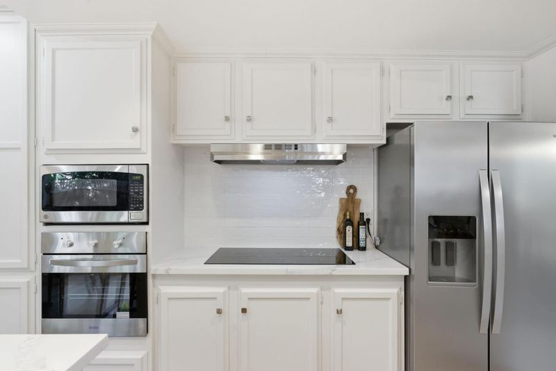 - Cooktop - Electric, Countertop - Quartz, Dishwasher, Exhaust Fan, Freezer, Garbage Disposal, Hood Over Range, Microwave, Oven Range - Built-In, Refrigerator