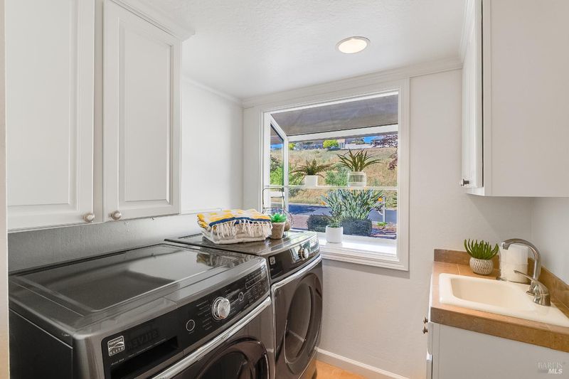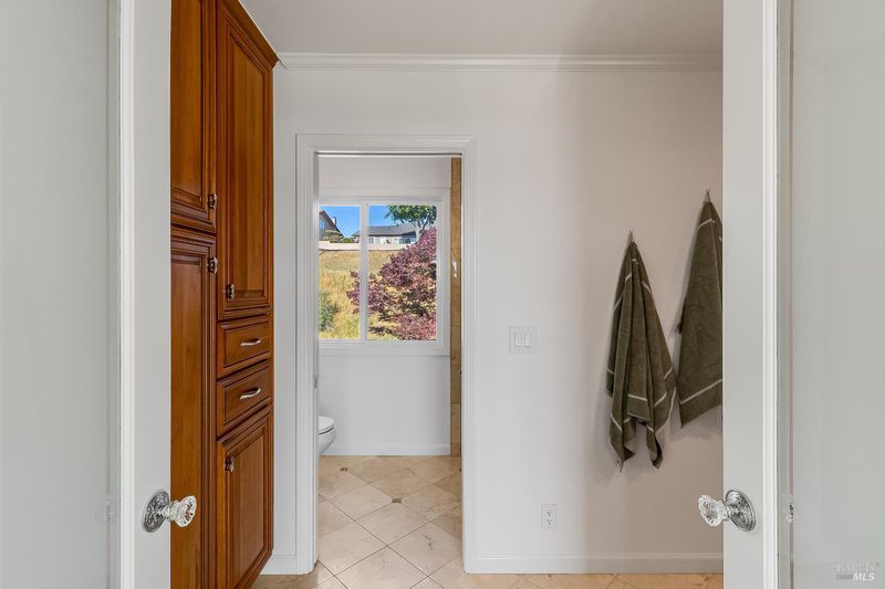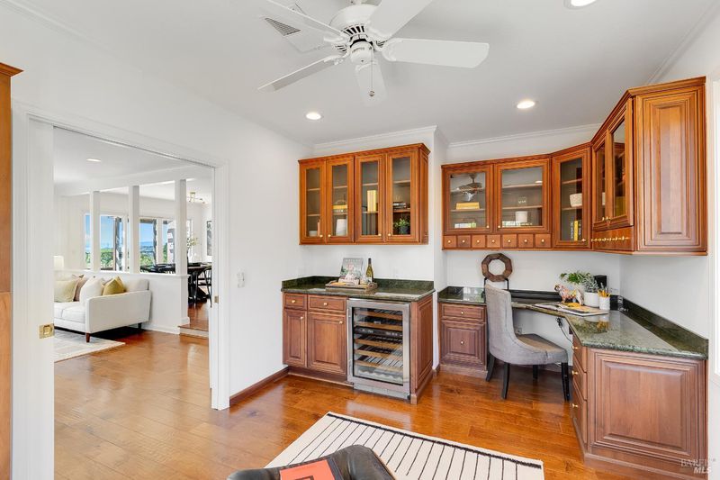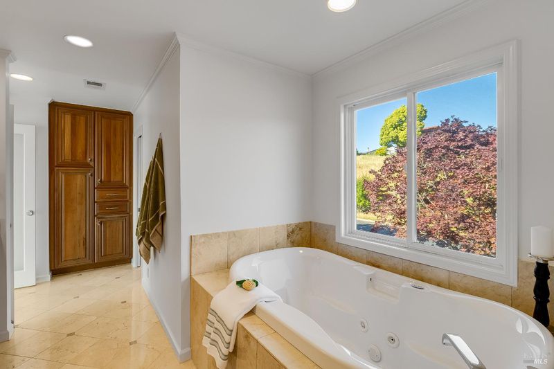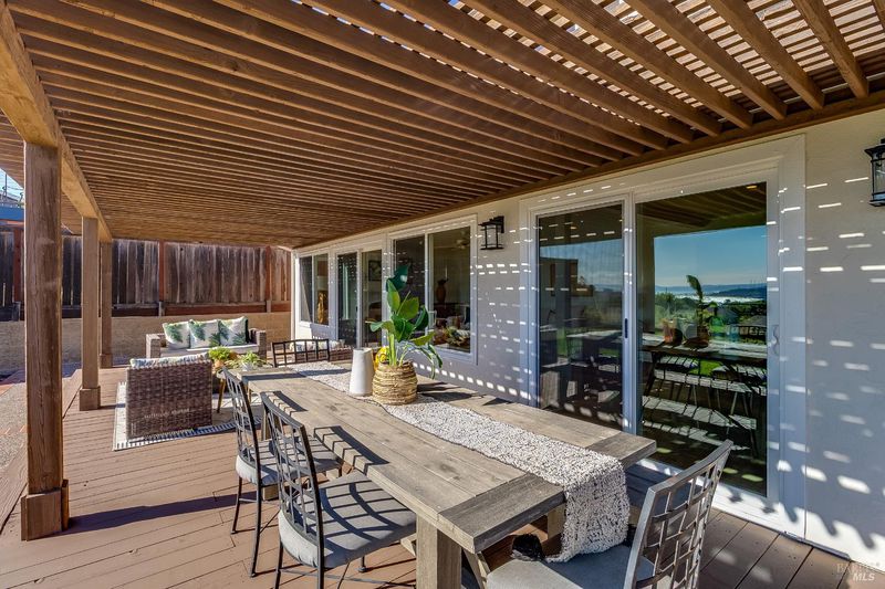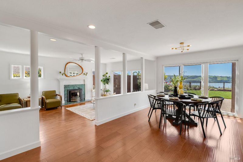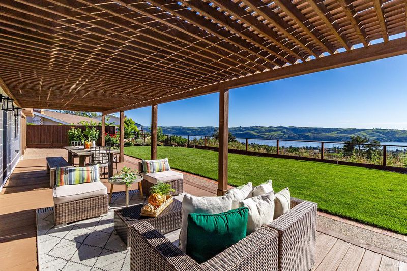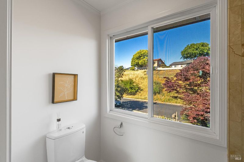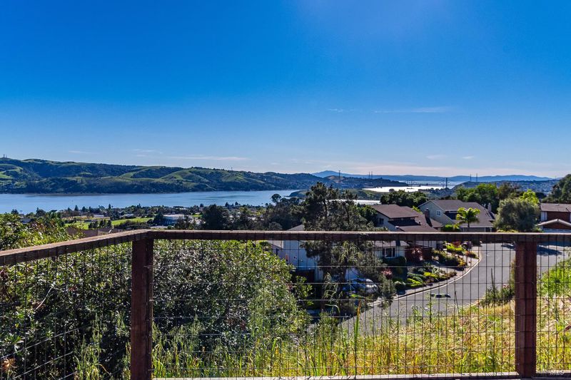 Perched on a quiet court with sweeping panoramic views of the Carquinez Strait, this one-of-a-kind Benicia home is being offered for the first time in 50 years. This stunning 5-bedroom, 3-bath residence spans approximately 2,914 sq ft and showcases pride of ownership throughout. Light-filled living spaces include two separate living roomsone with surround soundideal for both everyday living and entertaining. The beautifully updated interior features fresh paint, custom upgrades, and heated floors in the kitchen and bathrooms, while the exterior also boasts a brand new paint job for exceptional curb appeal. The chef's kitchen is equipped with a gas range, second oven, built-in refrigerator, and thoughtful design throughout. Upstairs, the primary suite and two additional bedrooms capture breathtaking water views. The spa-like primary bath offers a double vanity, jetted tub (never used), and separate shower. A downstairs bedroom has been thoughtfully converted into an office with custom built-ins and a wine fridge. Additional highlights include dual-pane windows, a convenient laundry chute, new garage doors and motors, and potential RV or boat parking. Ideally located near Southampton Shopping Center, Benicia Middle School, and key commuter routes, this home offers everyday convenience while maintaining a peaceful, private setting away from traffic and noise. Truly rare and exceptional.