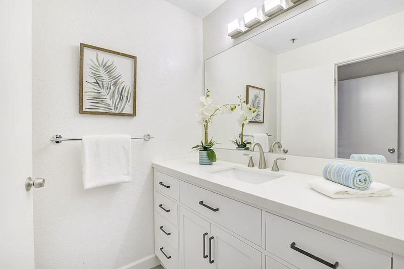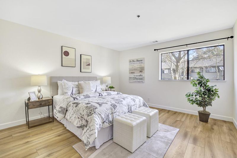 Gorgeous Lakeview Terrace condo nestled among peaceful outdoor spaces. Open floorplan with two spacious primary bedrooms, each with fully remodeled baths, one with a deep soaking tub, the other a custom-built shower. Updated kitchen features soft close cabinets, stainless steel appliances, and quartz countertops. Plank floors, white brick fireplace, and bright east-facing windows create a warm, inviting atmosphere. In-unit washer/dryer, upgraded electrical panel, and assigned garage parking complete the home. Step outside to a serene patio with storage, community pool & hot tub, scenic paths, and direct access to Almaden Lake Park with playgrounds, bocce courts, and trails. Conveniently located near Oakridge Mall, Whole Foods, Trader Joes, Costco, TJ Maxx, many restaurants, and more, with easy access to HWY 85 and 87 for an effortless commute. Comfort, nature, and convenience all in one home. Inquiry directly for special buyer incentive!