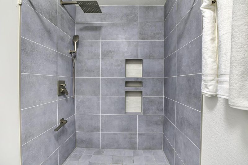 - Granite, Shower and Tub, Tile, Updated Bath, Primary - Stall Shower(s)