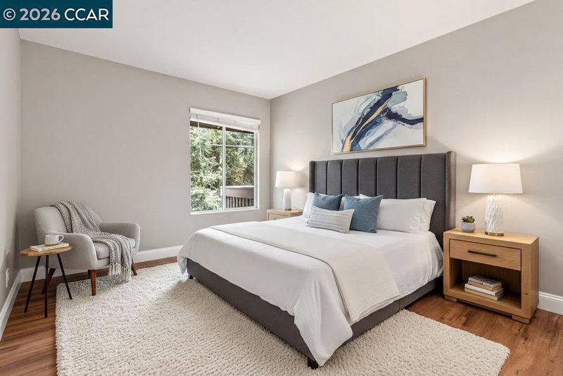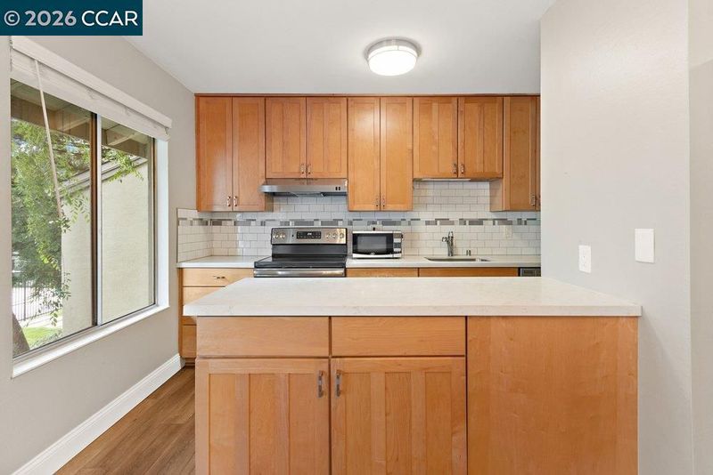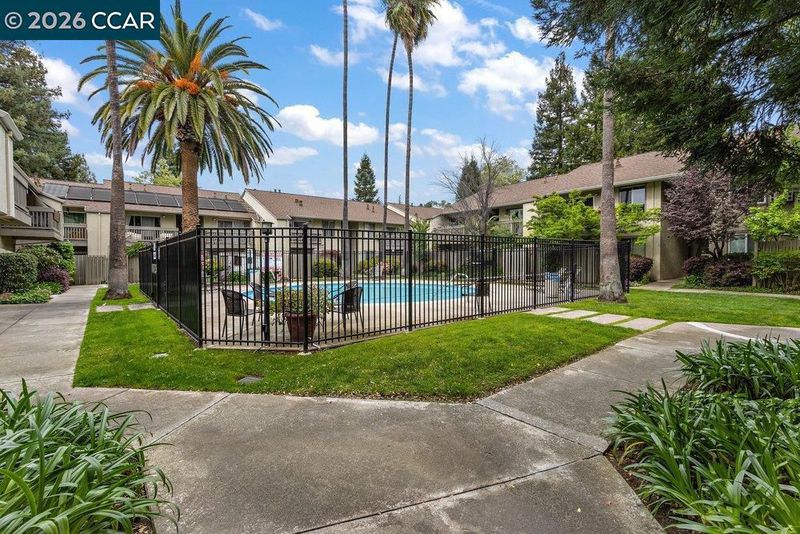 Modern Condo Living in the Heart of Walnut Creek. Welcome to this beautifully updated 1-bedroom, 1-bathroom condominium located in the highly desirable Walnut Park community. Offering 729 sq. ft. of thoughtfully designed living space, this home perfectly blends modern style with suburban convenience. The bright, open-concept living room features stylish laminate flooring and a cozy fireplace, ideal for relaxing evenings. A chef's delight, the kitchen boasts solid surface/quartz countertops, a subway tile backsplash, and a functional breakfast bar. It comes fully equipped with a refrigerator, electric range, dishwasher, and even a built-in wine refrigerator. Large windows and a private balcony overlook the serene community pool area, providing a peaceful outdoor escape. Enjoy the convenience of a wall furnace for heat, a spacious bedroom with mirrored closet doors, and an updated bathroom featuring tile flooring and a shower-over-tub. This condo puts you at the center of everything Walnut Creek has to offer: Minutes from Walnut Creek BART and easy access to the I-680/Hwy 24 interchange. Walking distance to Downtown Walnut Creek, renowned for world-class shopping at Broadway Plaza and exceptional dining. Top rated schools within the prestigious Walnut Creek School District